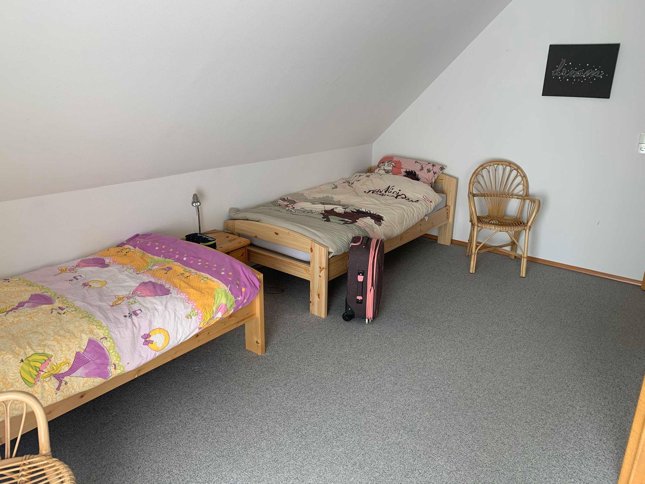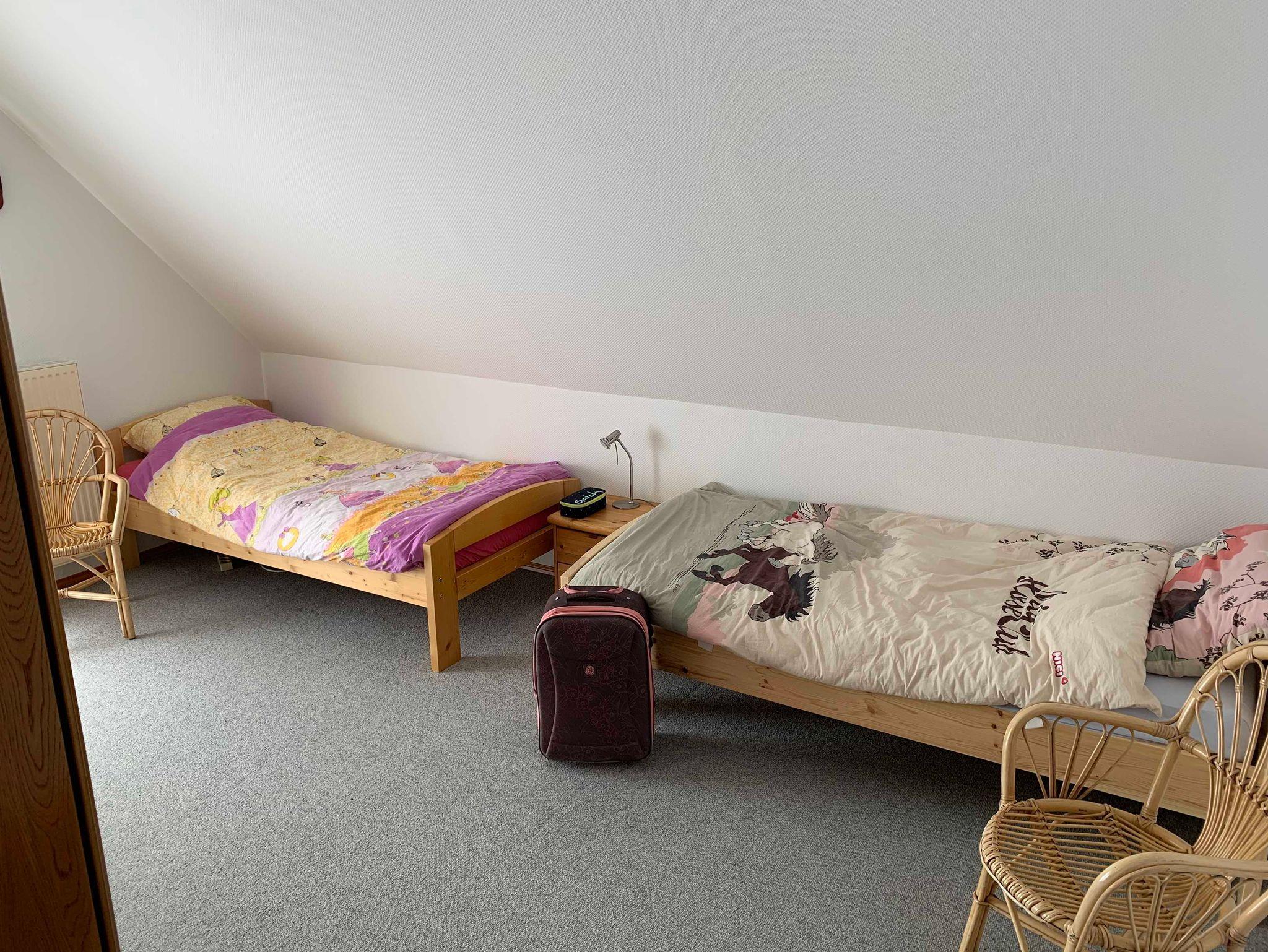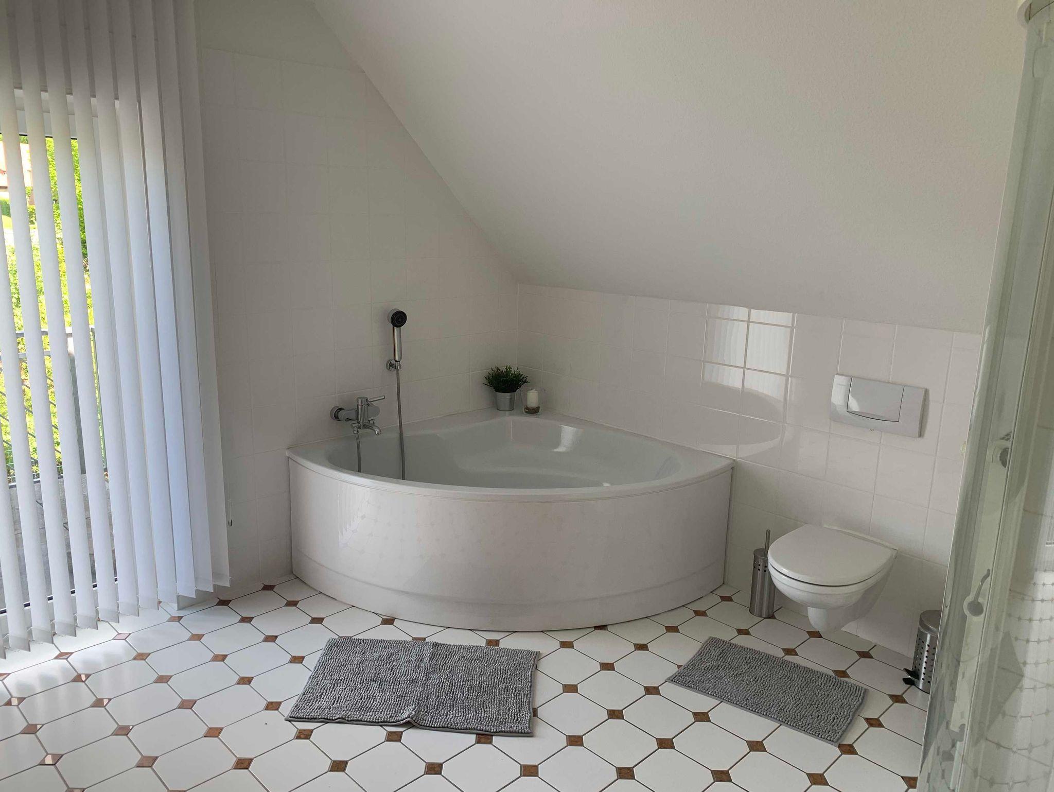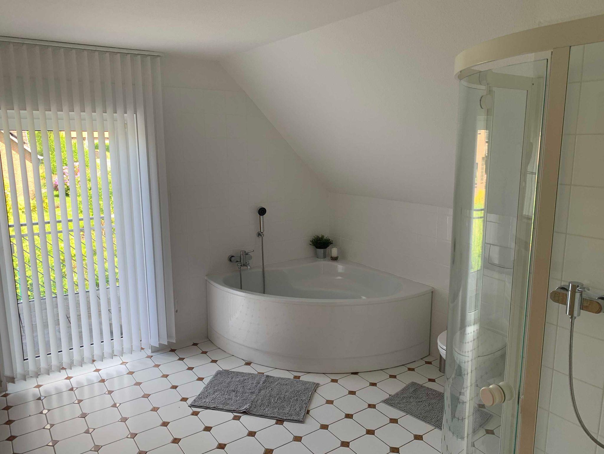 Das Haus bietet somit Platz für 6 Personen, wobei zwei Schlafzimmer mit Doppelbetten ausgestattet sind und eines mit zwei Einzelbetten. Beide Bäder verfügen über eine Dusche. Im Bad im OG gibt es eine riesige Eckbadewanne zur Entspannung.