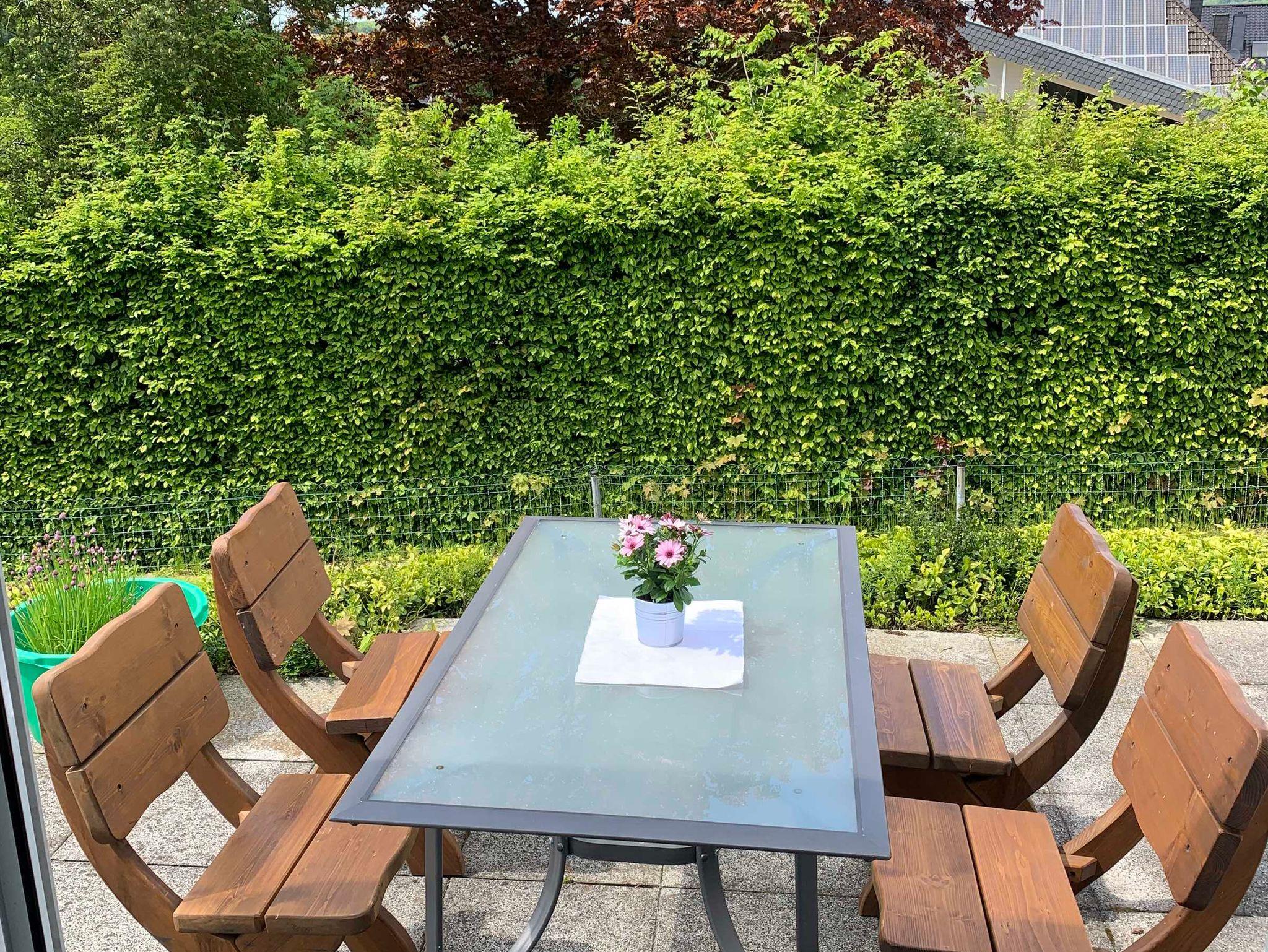 Der Außenbereich bietet einige Möglichkeiten. Neben einer Sitzecke haben Sie eine Doppelgarage zur Verfügung um Ihre Räder unterzustellen.