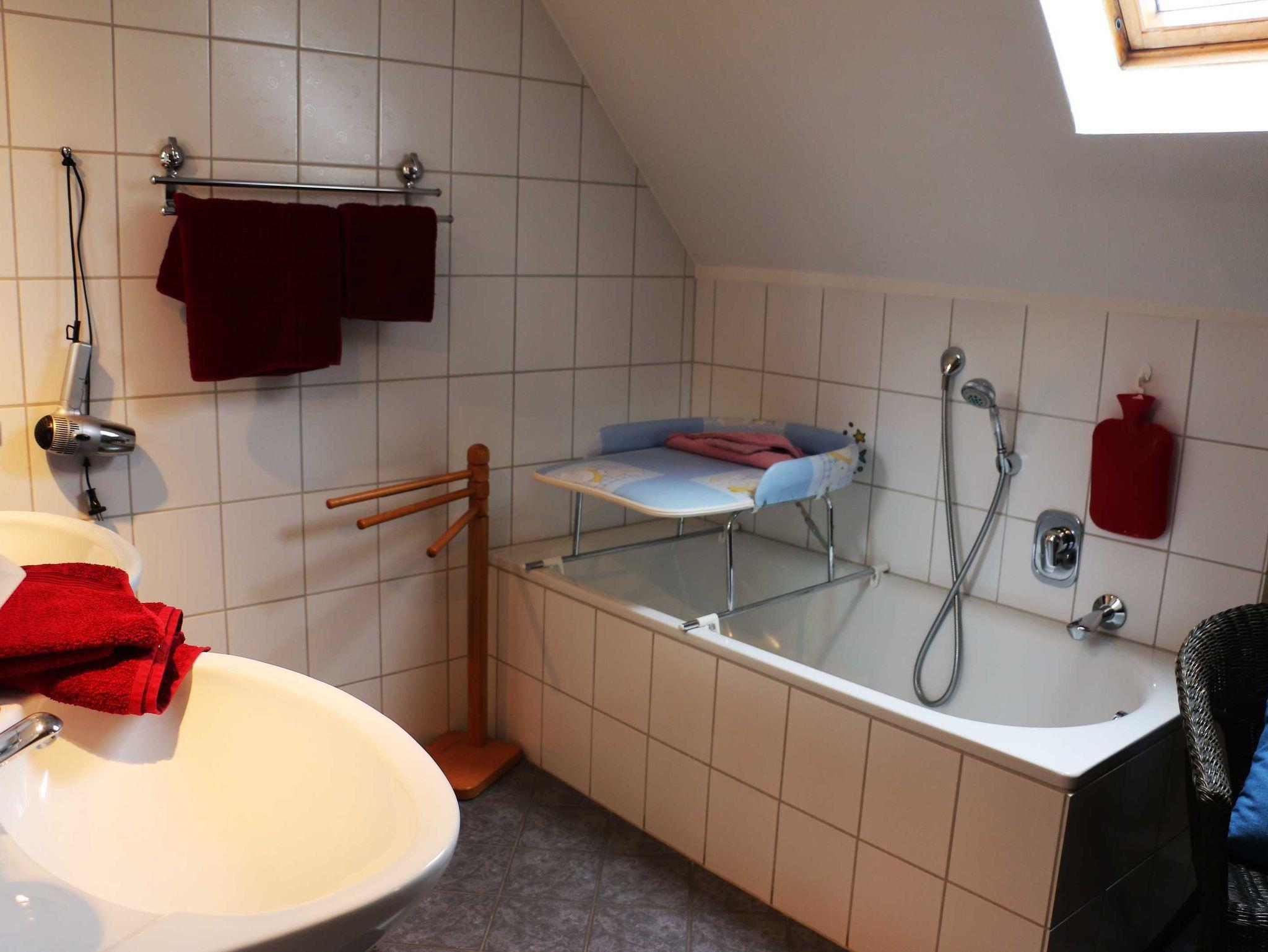 Der Keller ist mit einem Waschraum ausgestattet, der auch von unseren Gästen genutzt werden darf. Dort befindet sich ebenfalls ein Raum mit Fahrrädern zum ausleihen oder zum Unterstellen der eigens mitgebrachten Räder.