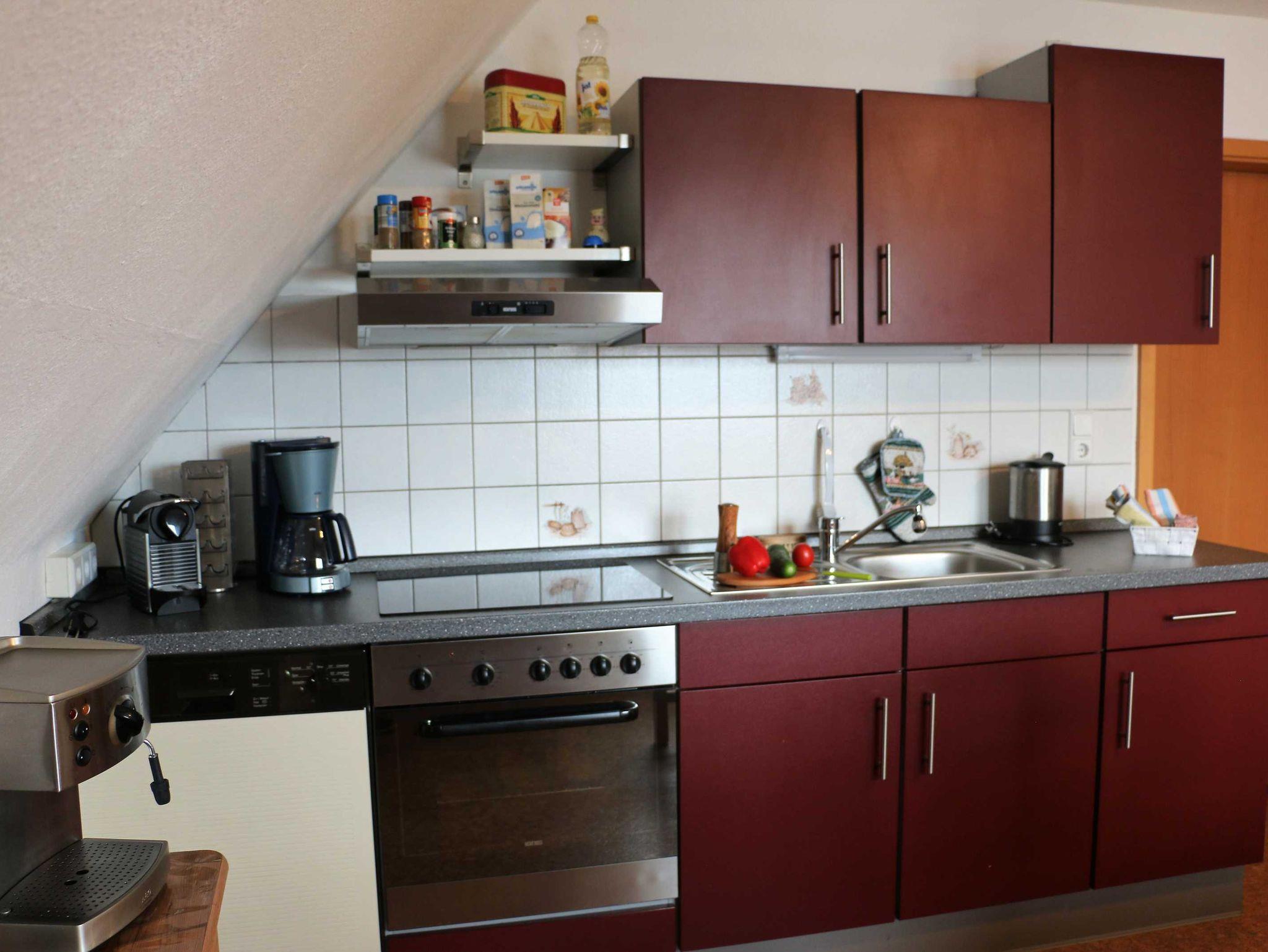 …und das in guter Raumaufteilung in 4 Zimmern (drei Schlafräume - 7 Betten), Wohnraum mit Balkon, einer großen komplett eingerichteten Küche - mit Kinderhochstuhl - , großem Bad - mit 2 Waschbecken, 1 Badewanne (mit Wickeltischaufsatz) und separater Dusche - zur Verfügung.