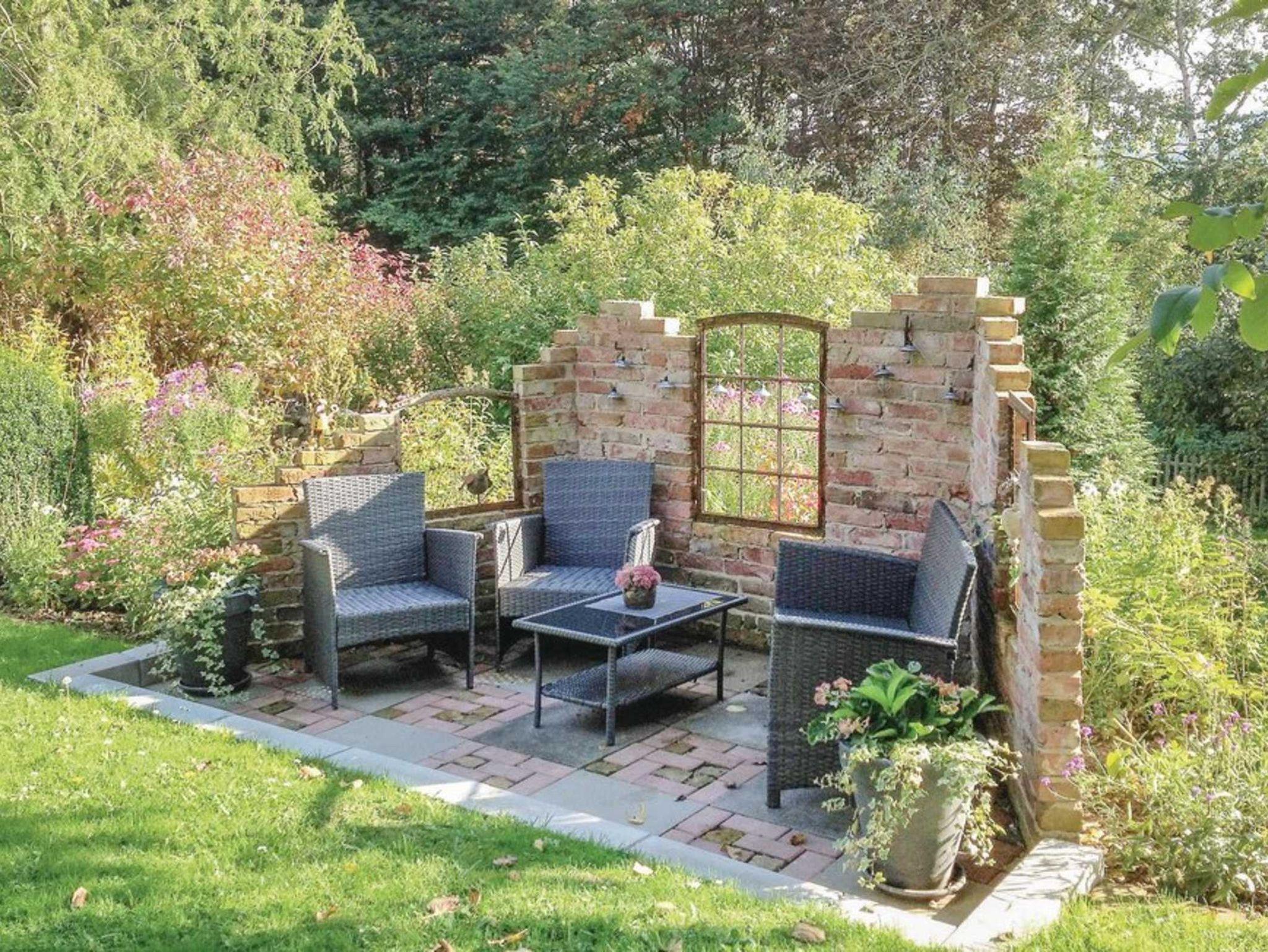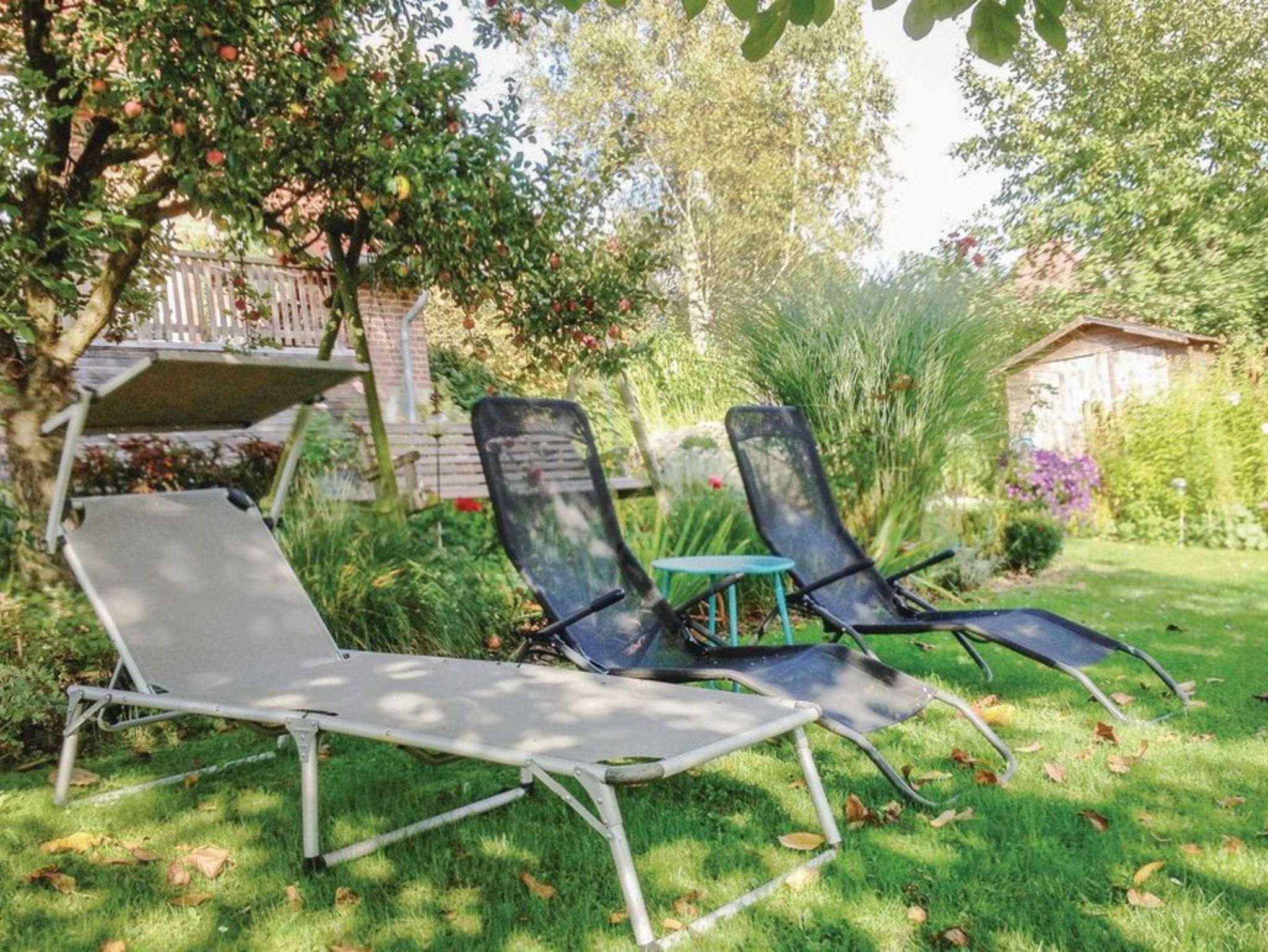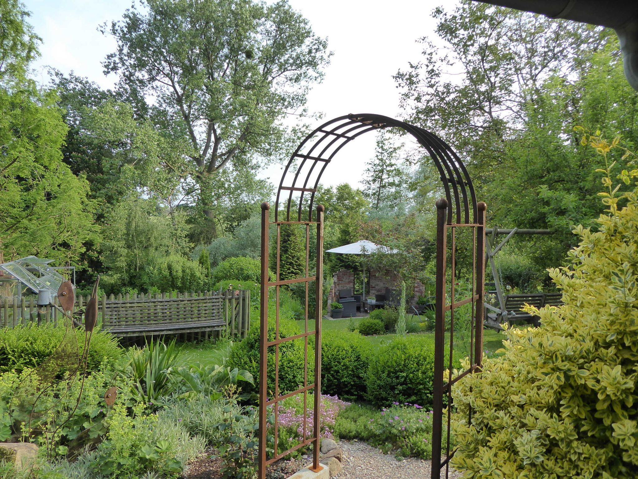 Wenige Meter hinter dem Haus der Ferienwohnungen befindet sich ein großer sehr gepflegter Garten, der mit seinem alten Baumbestand, den liebevoll gestalteten Blumenbeeten und Sitzgelegenheiten genug Möglichkeiten bietet, einen ereignisreichen Tag ausklingen zu lassen