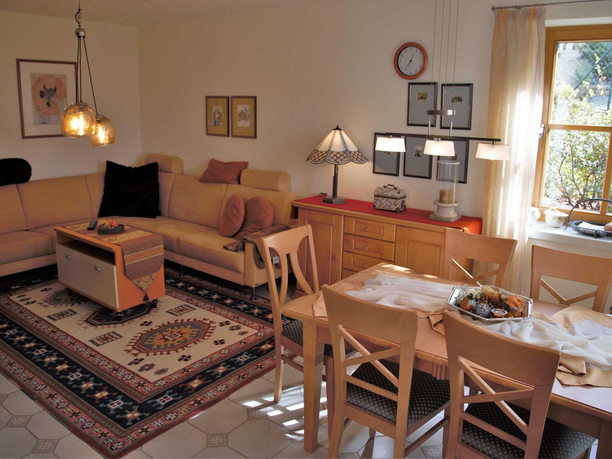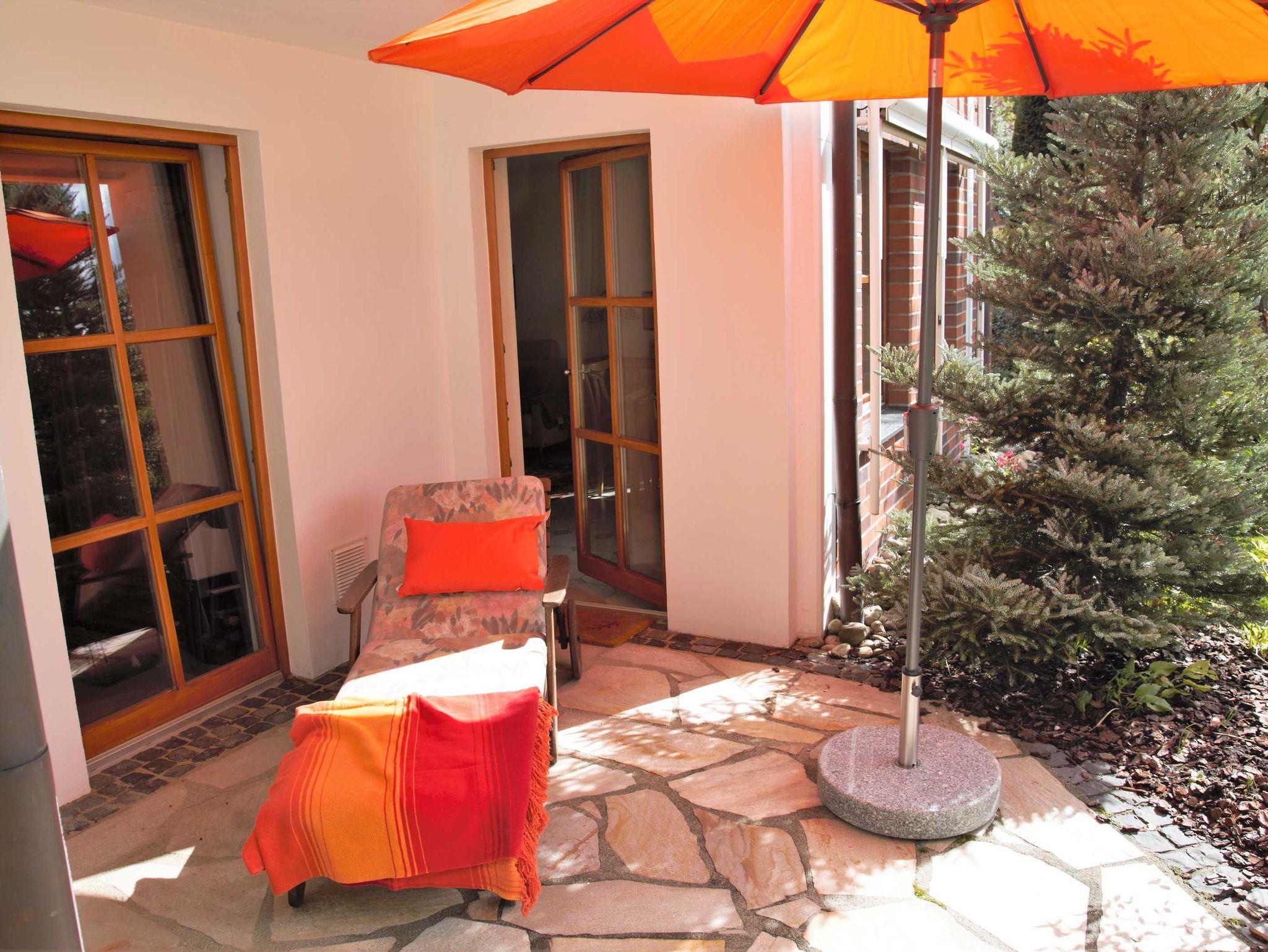 Die Wohnung ist ca. 70 qm groß und komfortabel und gemütlich eingerichtet. Eine hochwertig ausgestattete Küch lädt zum kochen ein. Auf der eigenen Terrasse mit Blick in den herrlich gestalteten, parkähnlich Garten, kann man einen ereignisreichen Tag wunderbar ausklingen lassen. Wer mag nutzt den Grill. Das Schlafzimmer ist gemütlich eingerichtet und mit einem großen Doppelbett ausgestattet. Ein besonderes Highlight in der Wohnung ist sicherlich die Sauna oder die Infrarot-Kabine, die gerne genutzt werden können. Ebenso können Sie ein Herren Mountainbike und ein Damen E-Bike ausleihen und damit die Gegend erkunden.