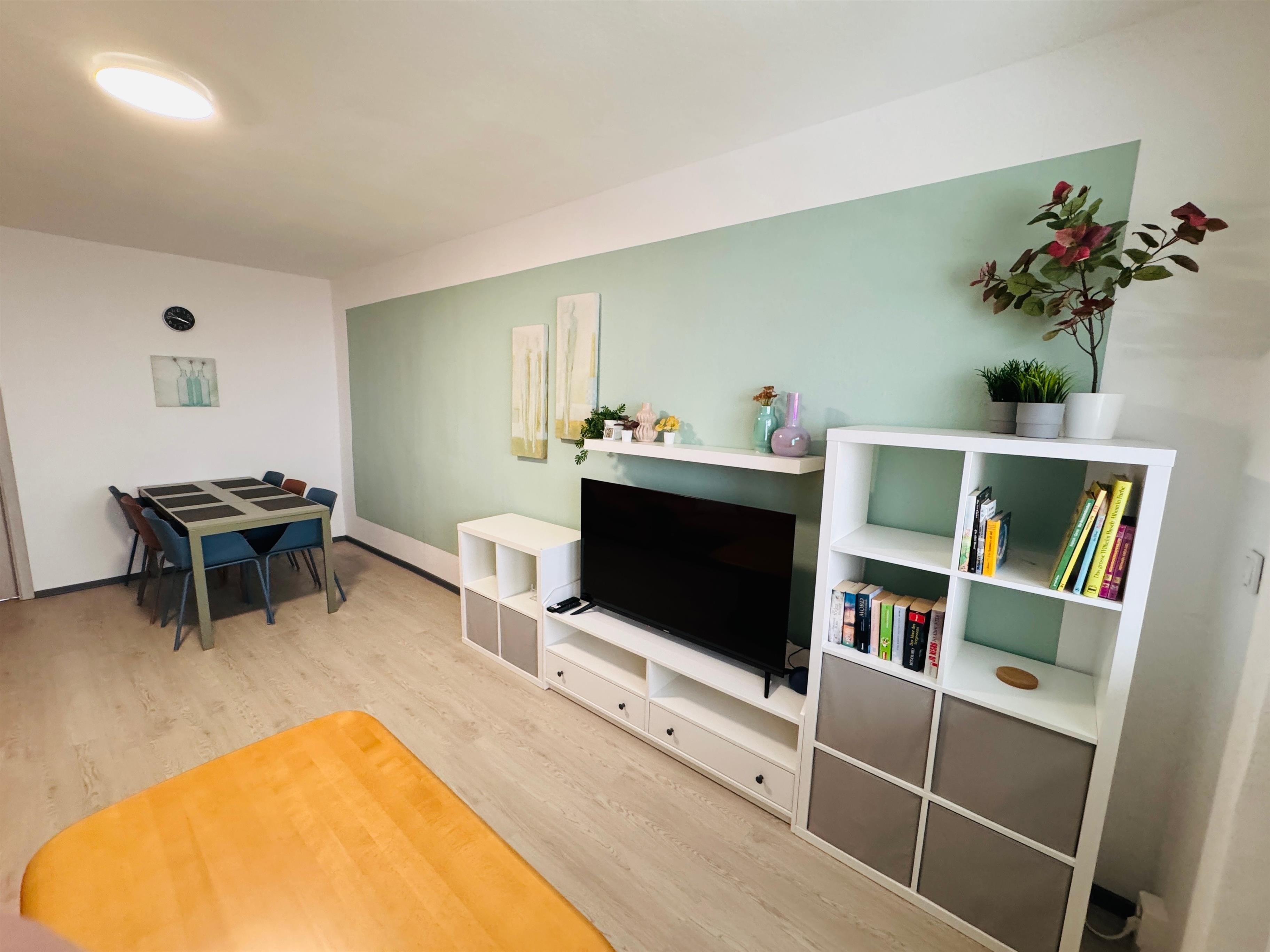 ? Moderner und heller Wohnbereich mit gemütlicher Wohnlandschaft und großem 50" Smart-TV
