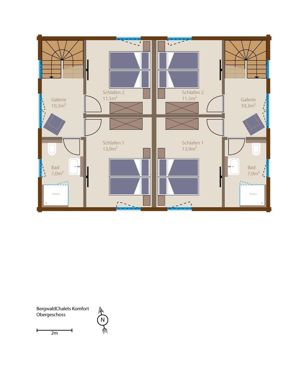 In einer ruhigen Sackgasse schmiegen sich das exklusive Bergwaldchalet "Komfort 1+2" an einen Hang mit Südwest-Ausrichtung. Das als Doppelhaus konzipierte Chalet ist von Natur umgeben. Rechts plätschert – wenn er Wasser führt – ein Bach und unterhalb des Chalets trifft sich gelegentlich das Rotwild zum „Abendessen“.
