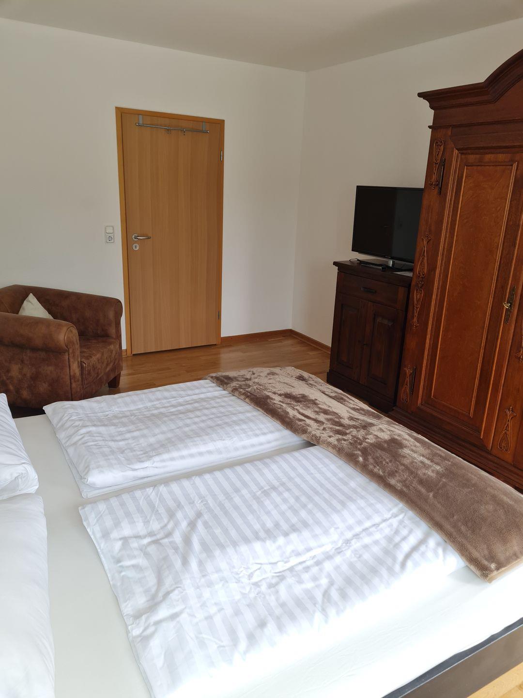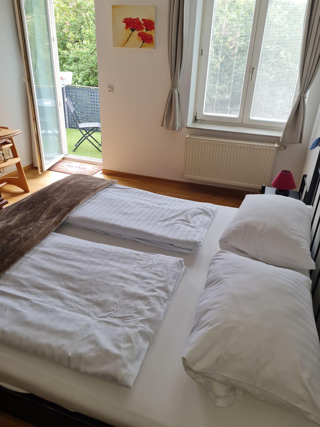 Die Ferienwohnung bietet Platz für maximal 4 Personen und ist komplett ausgestattet. Im Eingangsbereich der Wohnung erwartet Sie ein Essbereich mit offener Einbauküche. Das geräumige Schlafzimmer ist mit Doppelbett, Kleiderschrank und TV ausgestattet und hat einen eigenen Zugang zum Balkon.
