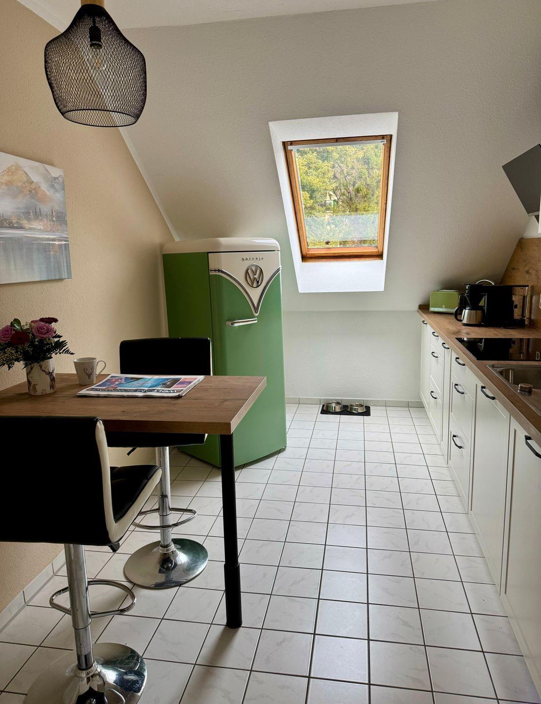Die Ferienwohnung verfügt über eine voll ausgestattete Küche, in der ihr nach Herzenslust kochen könnt. Wenn ihr jedoch keine Lust habt zu kochen, könnt ihr euch im Restaurant direkt gegenüber verwöhnen lassen – dort werden Frühstück, Mittag- und Abendessen angeboten.