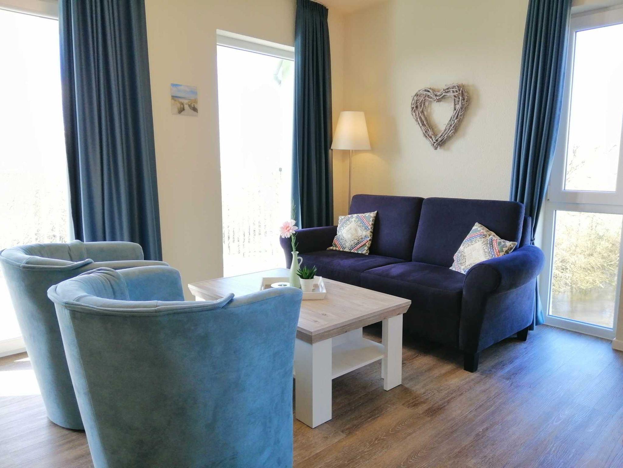Herzlich Willkommen am Meer! Direkt hinter dem Deich erwartet Sie unsere lichtdurchflutete Neubau-Ferienwohnung mit gemütlichem Wohnbereich nebst Essplatz, offener Küche, zwei Schlafräumen und geräumigem Bad inkl. Sauna. Die moderne und hochwertige Einrichtung ist für 4 Personen ausgelegt. In einem zeitlos schönen Design bietet Ihnen die ansprechende Einbauküche alles, was Sie benötigen (Geschirr, Besteck, Gläser, Töpfe und Pfannen). Der Wohnraum und die beiden Schlafzimmer sind mit Satelliten-TV ausgestattet. Sie können nicht nur eine Vielzahl von Fernsehprogrammen, sondern auch zahlreiche Radiosender empfangen. Selbstverständlich ist auch Internet-Nutzung über WLAN möglich. Jedes Schlafzimmer verfügt über ein Doppelbett mit Nachtkonsolen und einen Kleiderschrank. Durch dichte Vorhänge vor den bodentiefen Fenstern können Sie die Lichtverhältnisse nach Ihren Bedürfnissen regulieren. Das Badezimmer bietet mit integrierter Sauna, ebenerdiger (Regen-)Dusche und großer Eck-Badewanne bei jedem Wetter Entspannung für Körper und Seele. Auch ein großzügiger möblierter Süd/West-Balkon lädt zur Erholung ein. Hier können Sie mit herrlichem Blick auf die Graft und ins Grüne tagsüber die gute Seeluft mit wärmenden Sonnenstrahlen genießen und abends traumhafte Sonnenuntergänge beobachten. Von der westl. Ecke des Balkons, ebenso wie aus den seitlichen Fenstern der Ferienwohnung , kann man über den Deich aufs Wattenmeer schauen ? bis hin zu den Inseln Wangerooge und Minsener Oog. Liebe Gäste, bitte haben Sie dafür Verständnis, dass aus Sicherheitsgründen das Grillen im gesamten Ferienpark verboten ist. Wir möchten auch darauf hinweisen, dass sich die Ferienanlage derzeit noch im weiteren Ausbau befindet und es aufgrund dieser Bautätigkeiten zu optischen und akustischen Beeinträchtigungen kommen kann. Sollten sich für Sie daraus Fragen ergeben, werden wir Ihnen diese gerne beantworten. Zur Ferienwohnung gehört auch ein PKW-Stellplatz. Besondere Merkmale Barrierefrei zu erreichen (Aufzug). Eigene Sauna, Fußbodenheizung, großer Süd-West-Balkon mit seitlichem Meerblick. Für Ihre Wertsachen (z.B. Schmuck, Smartphone, Papiere) steht Ihnen ein kleiner Schranksafe mit individuell programmierbarer Codierung kostenlos zur Verfügung. Während der Saison steht Ihnen ein Saisonstrandkorb am Strand kostenfrei zur Verfügung.