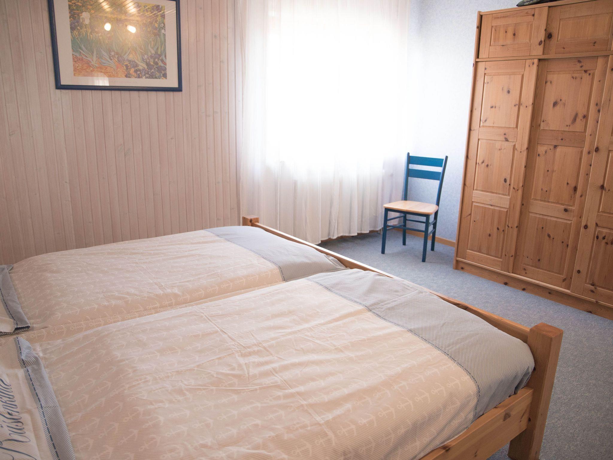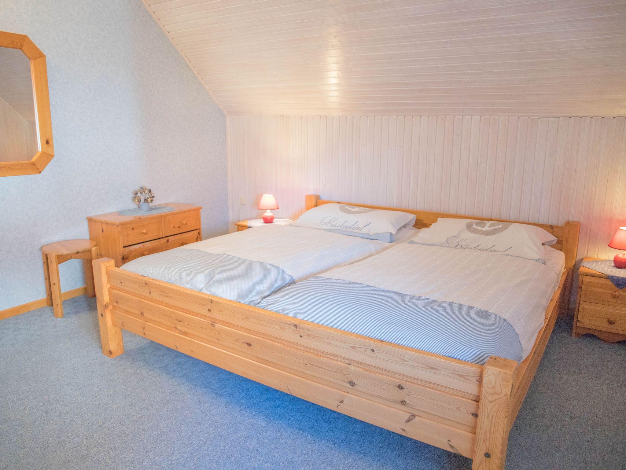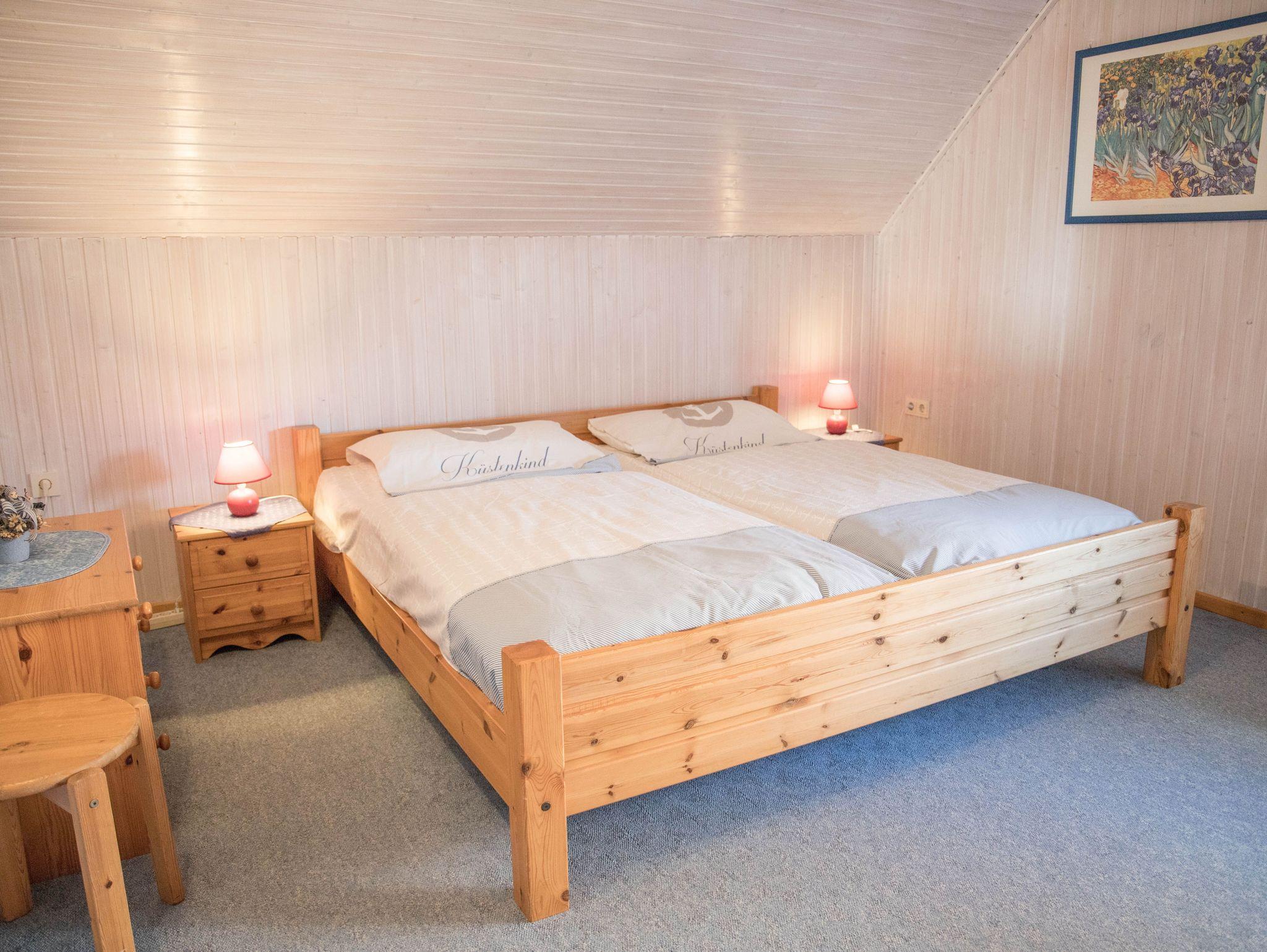 Die Ferienwohnung verfügt über ein Schlafzimmer mit einem komfortablen Doppelbett Das Schlafzimmer lässt sich durch ein Rollo abdunkeln. Hier finden Sie erholsame Nächte. Im Wohn-Essbereich steht ein Schrankbett zur Verfügung.