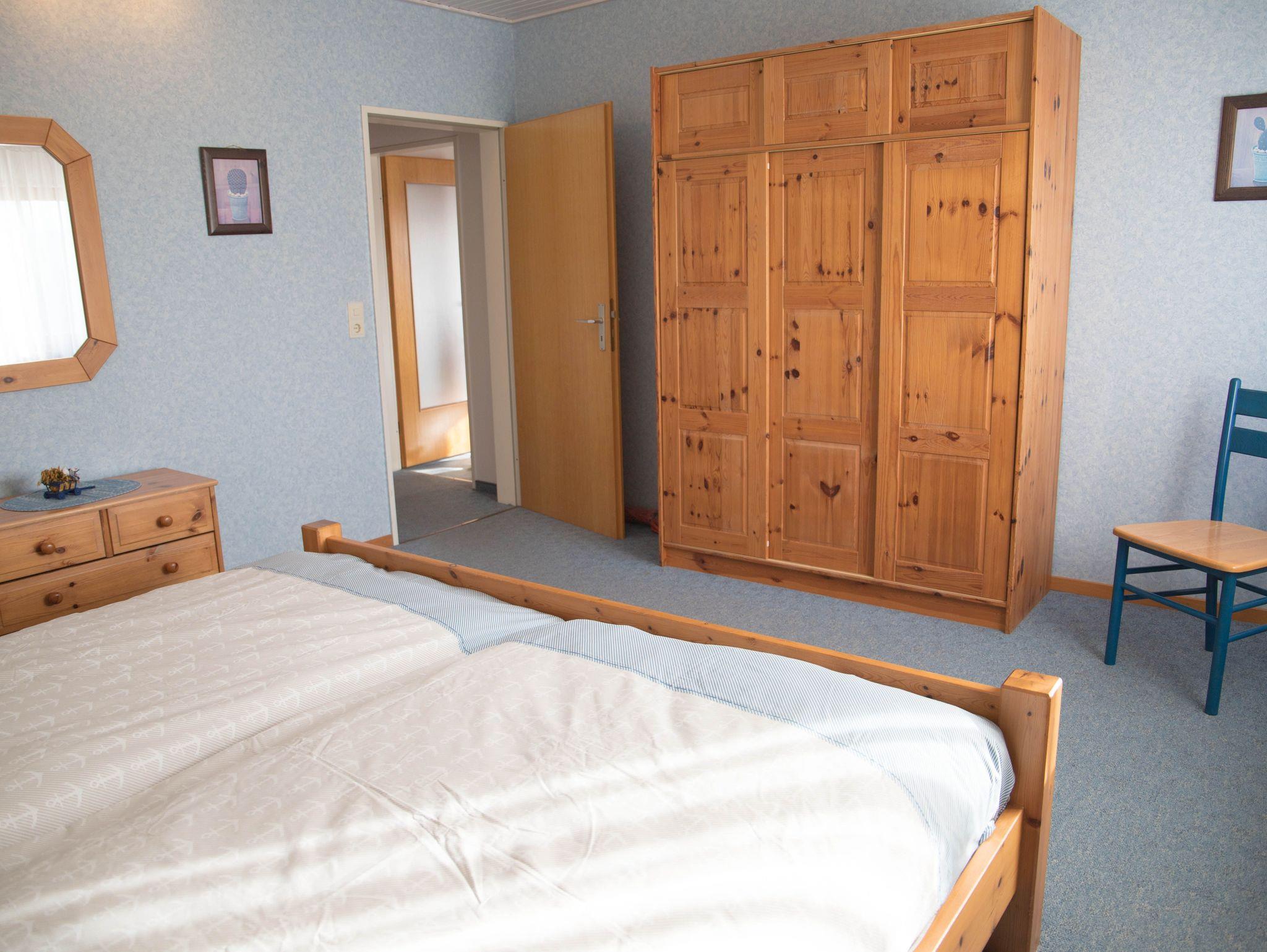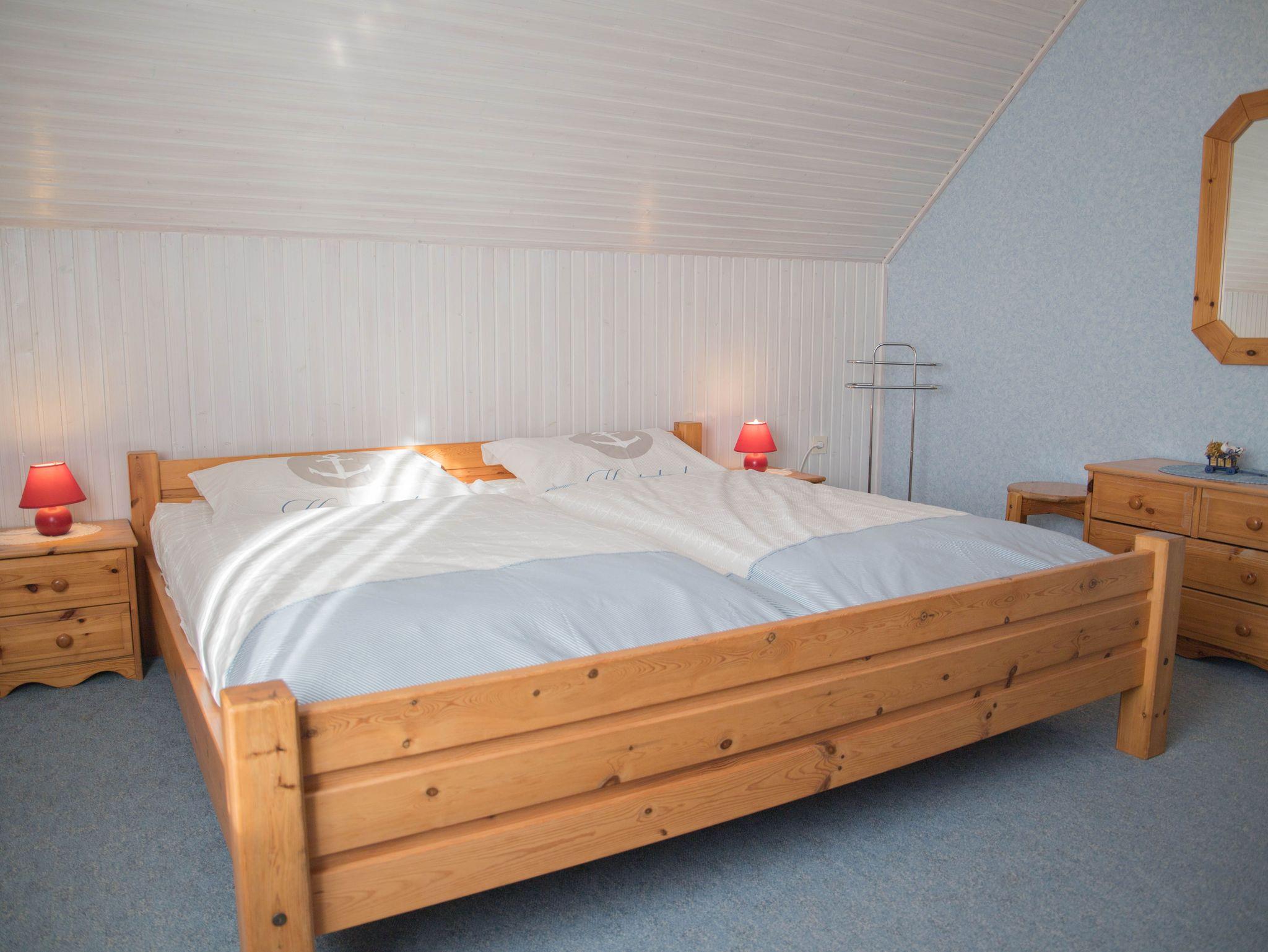 Die Ferienwohnung verfügt über ein Schlafzimmer mit einem komfortablen Doppelbett Das Schlafzimmer lässt sich durch ein Rollo abdunkeln. Hier finden Sie erholsame Nächte.