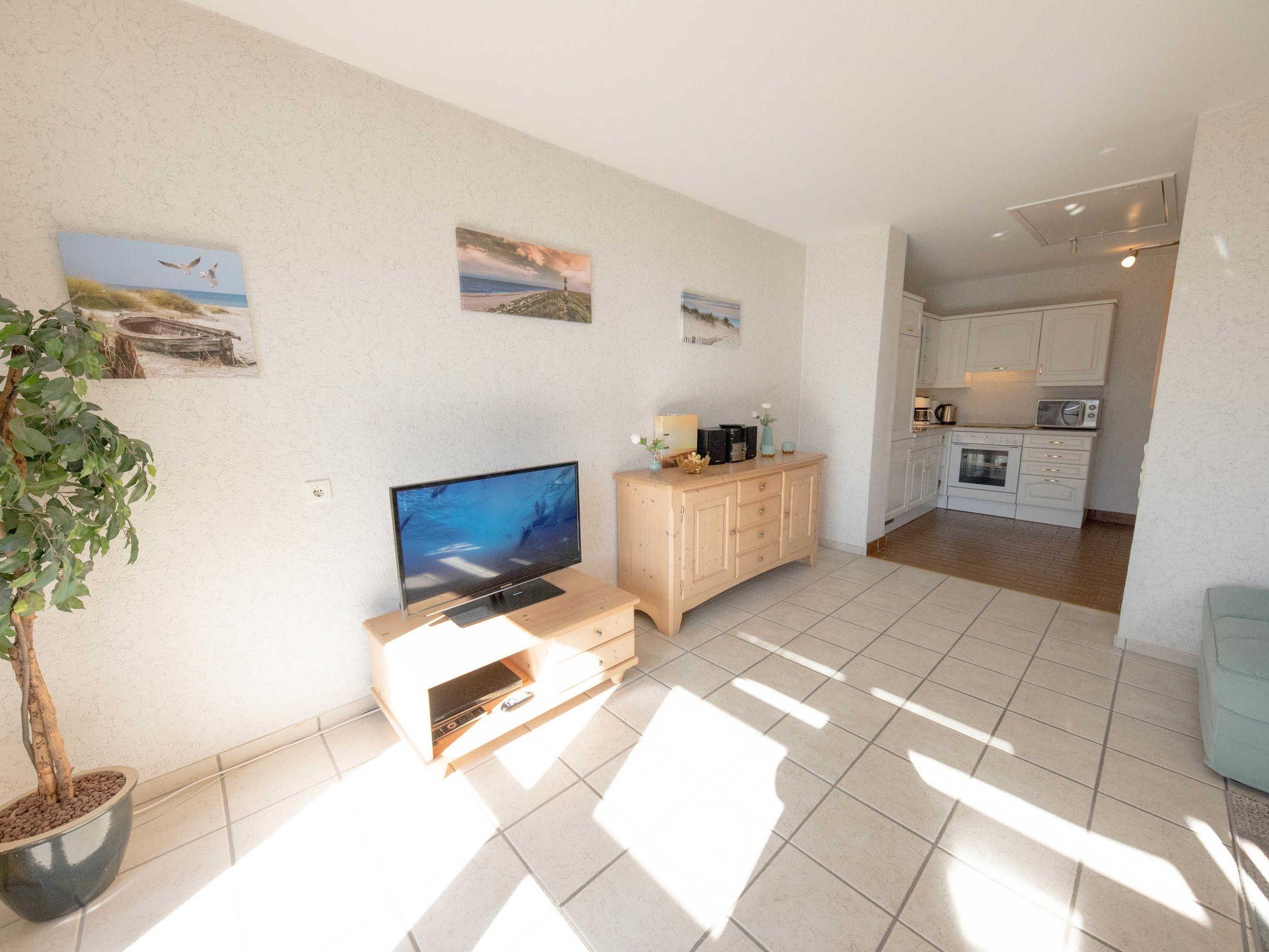 Die liebevoll eingerichtete Ferienwohnung Mellum befindet sich in der 2. Etag nur wenige Gehminuten vom schönen Sandstrand von Schillig entfernt. Die Ferienwohnung verfügt über ein helles Wohnzimmer mit gemütlichem Ecksofa, einem Flachbildfernseher mit DVD Player sowie einem Essplatz und einem direkten Zugang auf den Balkon. Die offene Küche verfügt über einen Backofen mit 4 Platten-Herd, einem Kühlschrank mit Gefrierfach, einer Mikrowelle sowie einer Kaffemaschine und Toaster. Der Küche schließt sich das Schlafzimmer mit einem Doppelbett an. Das Marmorbadezimmer bietet Ihnen eine Regendusch und WC. Ein eigener Parkplatz ist direkt vor dem Haus. Haustiere sind willkommen. Der Strand sowie Restaurants, Becker und Einkaufsmöglichkeiten sind bequem zu Fuß erreichbar.