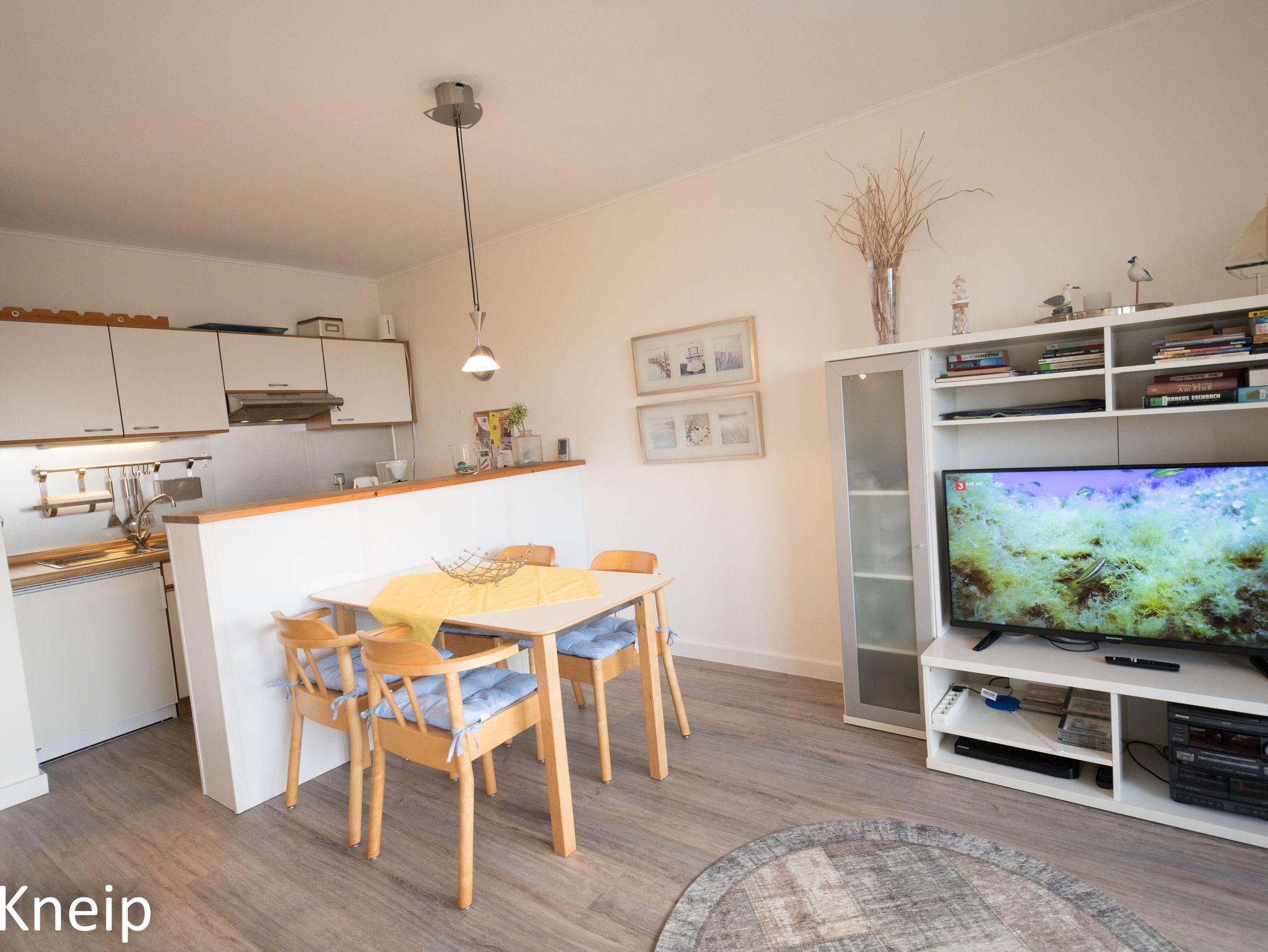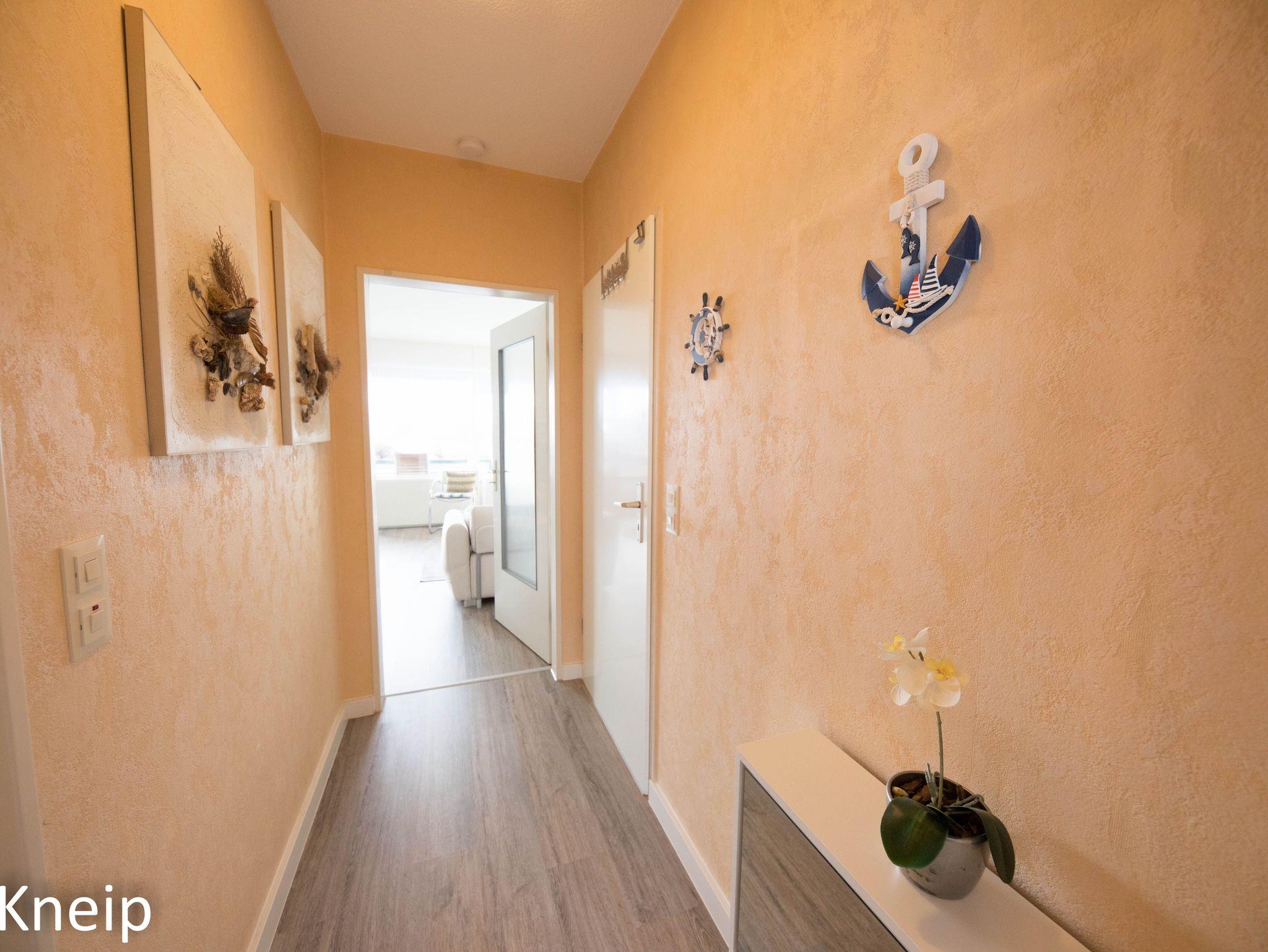 Die liebevoll eingerichtete Ferienwohnung Meggy liegt nur wenige Gehminuten vom weitläufigen Sandstrand in Schillig entfernt. Auch die kleine Fußgängerzone mit Bäcker, Souveniergeschäften und Restaurants sind schnell zu erreichen. Das Objekt verfügt über ca. 50m² und befindet sich im ersten Obergeschoss eines Reihenhauses. Ein separater Eingang ist vorhanden. Das Wohnzimmer ist hell und freundlich gestaltet, es lädt zum gemütlichen Verweilen ein. Ein Sat-TV (43Zoll), sowie Radio und CD-Player sind vorhanden. Auch eine kleine Auswahl an Strandlektüren und Gesellschaftsspielen liegen für Sie bereit. Im Wohnzimmer integriert aber optisch durch einen Tresen getrennt, befindet sich die kleine aber feine Küchenzeile. Sie ist komplett mit Backofen, Geschirrspülmaschine, Kaffeemaschine, Toaster und Wasserkocher sowie einem 4-Platten-Herd und einer Kühl-Gefrierkombination ausgestattet. Der Essbereich schließt sich der Küchenzeile an. Vom Wohnzimmer aus gelangen Sie auf den großen und überdachten Balkon (Süd-West). Hier können Sie auch noch in den Abendstunden Ihr Gläschen Wein bei Sonnenstrahlen genießen. Das helle Badezimmer verfügt über eine Dusche mit niedrigem Einstieg, Waschbecken und WC. Ein Fön ist vorhanden. Das maritime Schlafzimmer lädt zum Träumen ein. Das Bett hat eine Breite von 1,80m x 2,00m (zwei Matratzen). Zwei Schränke, eine Kommode, sowie ein Einbauschrank bieten genügend Stauraum. Das Schlafzimmer lässt sich mit Außenrollos verdunkeln. Ein Parkplatz gehört zur Wohnung. Auch Ihre Räder stehen im Fahrradschuppen sicher und trocken. Auf Anfrage darf gerne ein Haustier mitgebracht werden. Nichtraucherwohnung