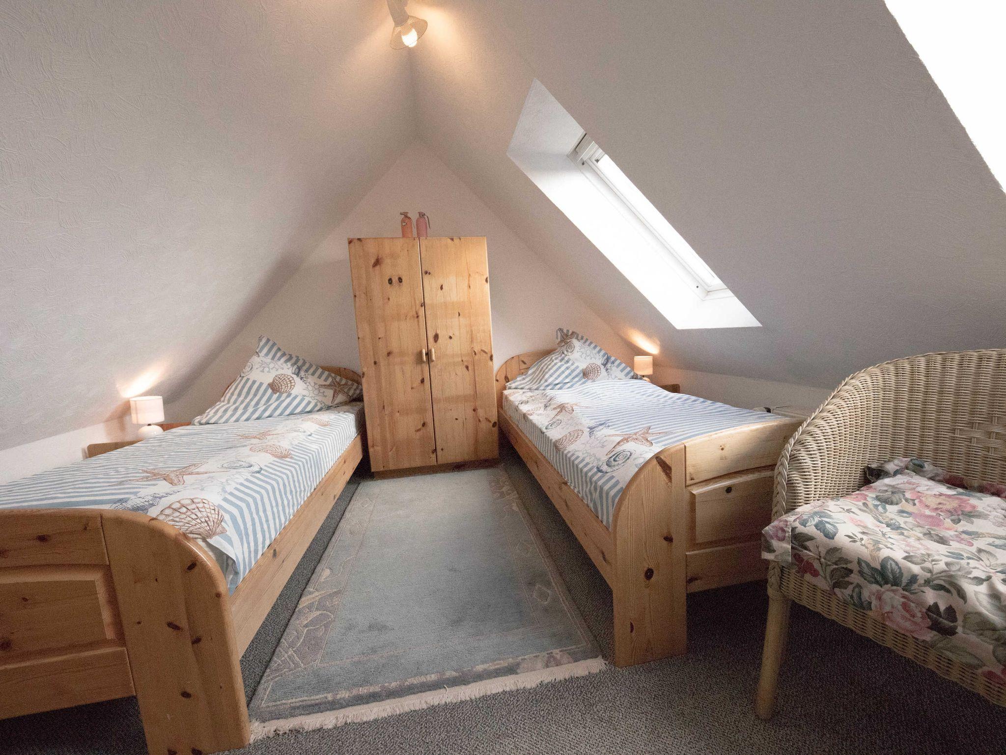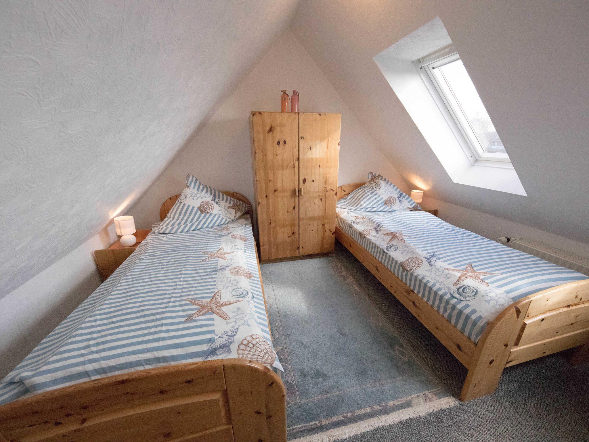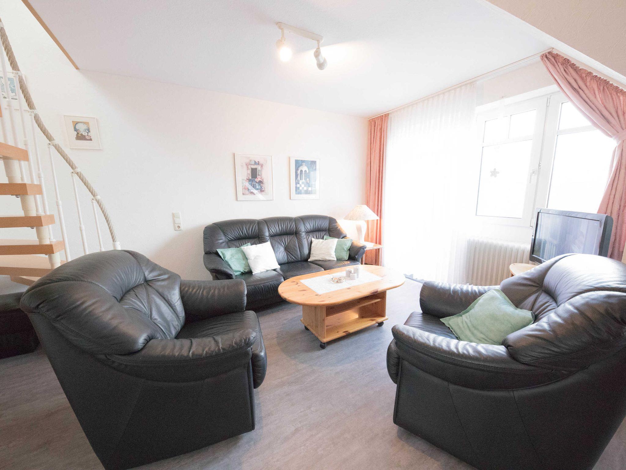 Gemütliches, voll ausgestattetes Appartment für 4 Personen, zentral aber trotzdem ruhig gelegen ca. 200 m vom großen Sandstrand entfernt ... Das Appartment liegt im 2 OG am Ende des Laubengangs. In der unteren Ebene gelangen Sie über den Flur in einen großen Wohnschlafraum , mit gemütlicher Sitzgruppe und einer Schrankwand in der ein Doppelbett integriert ist, eine komplette Küche mit 4 Plattenkochfeld, Mikrowelle, Kühlschrank, Toaster, Wasserkocher und Kaffeemaschine und der Essecke und ein Bad mit Dusche.Vom Balkon aus haben Sie einen direkten Blick auf die Nordsee, Über eine Treppe gelangen Sie in den oberen, separaten Schlafraum,in dem sich zwei Einzelbetten befinden und eine kleine Spielecke für die Kinder.