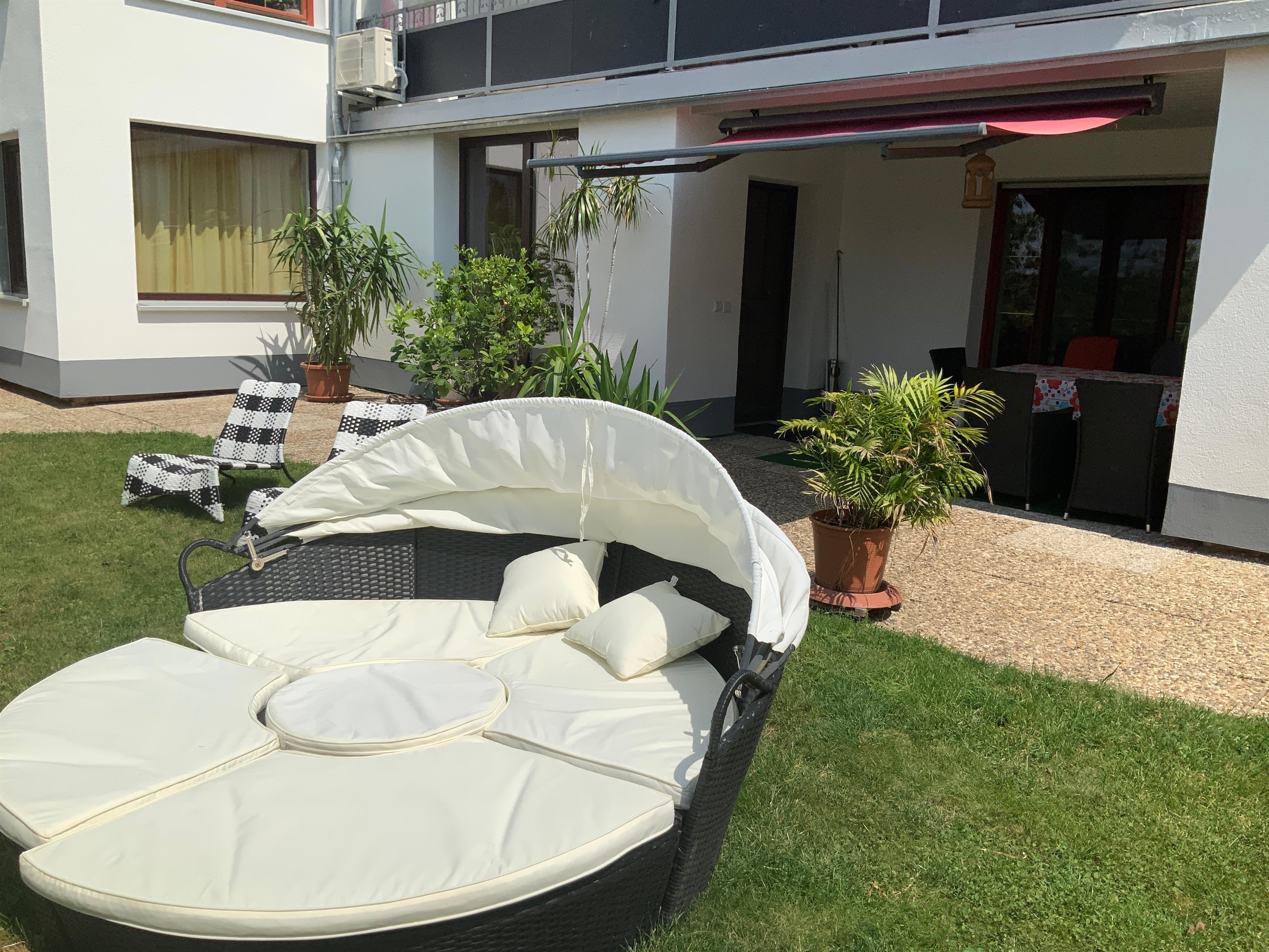 Im Aussenbereich steht eine überdachten Terasse und schöne Garten mit Grill Möglichkeiten.
