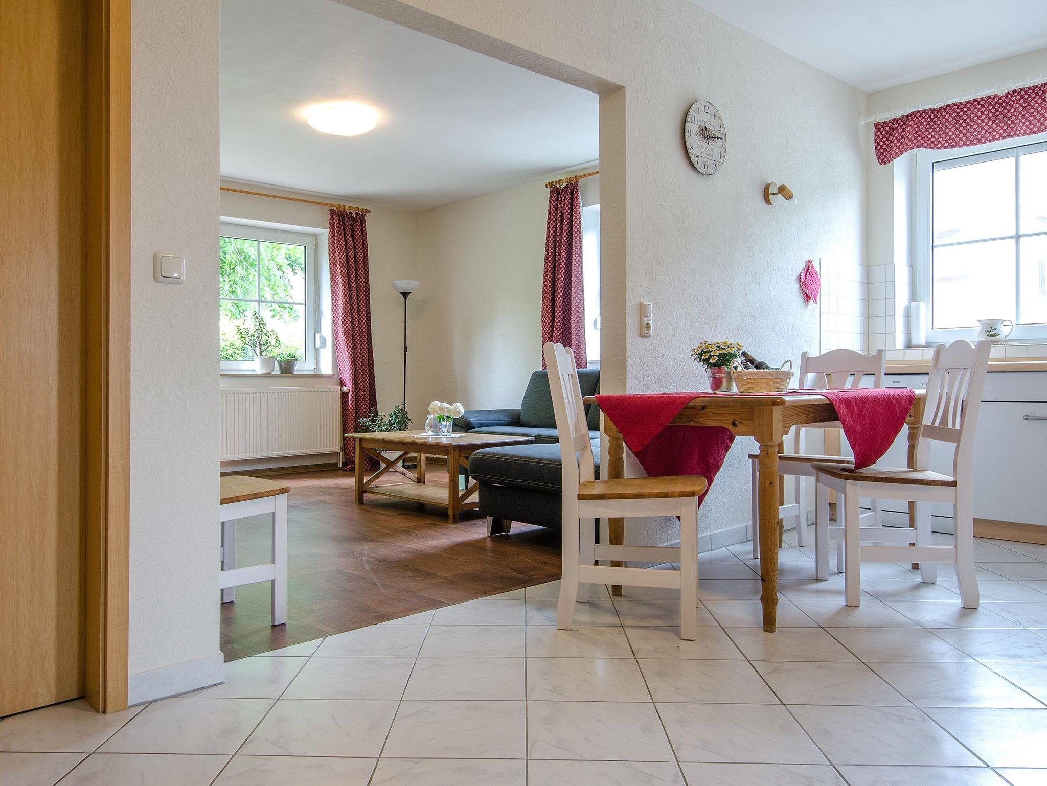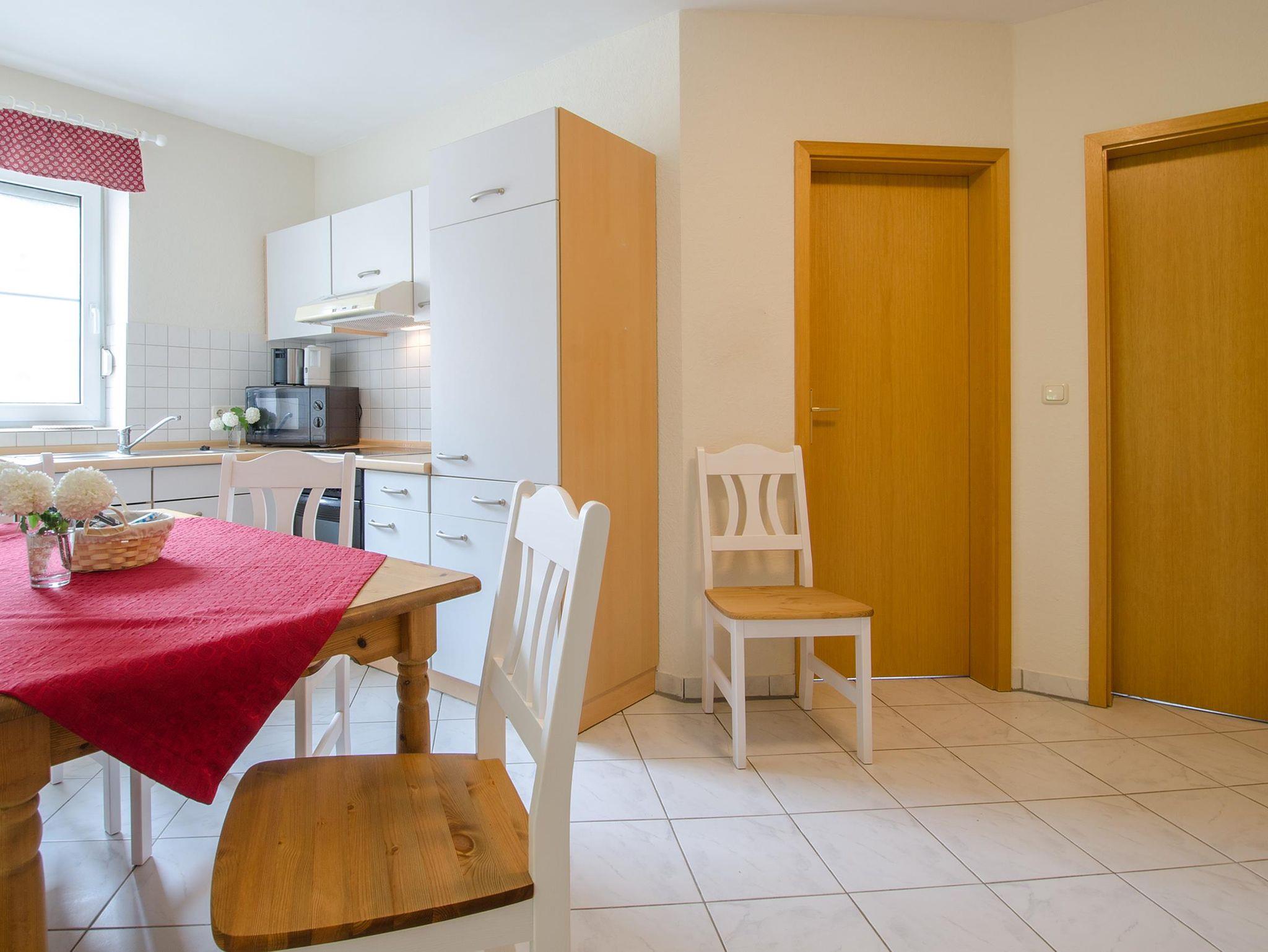 Größe 70qm, 2 Schlafzimmer mit je 2 Betten, Wohnzimmer mit Schlafcouch zum Ausziehen für zwei Personen, TV + Telefon, voll ausgestattete Küche mit Herd, Backofen, Geschirrspüler, Kaffeemaschine, Toaster, Mikrowelle, Bad mit Dusche und WC, Gästetoilette, Handtücher, Bettwäsche und Endreinigung inklusive, Waschmaschine und Wäschetrockner vorhanden, Reitmöglichkeiten vor Ort, Großes Gelände zum Toben und spielen, Grillmöglichkeiten
