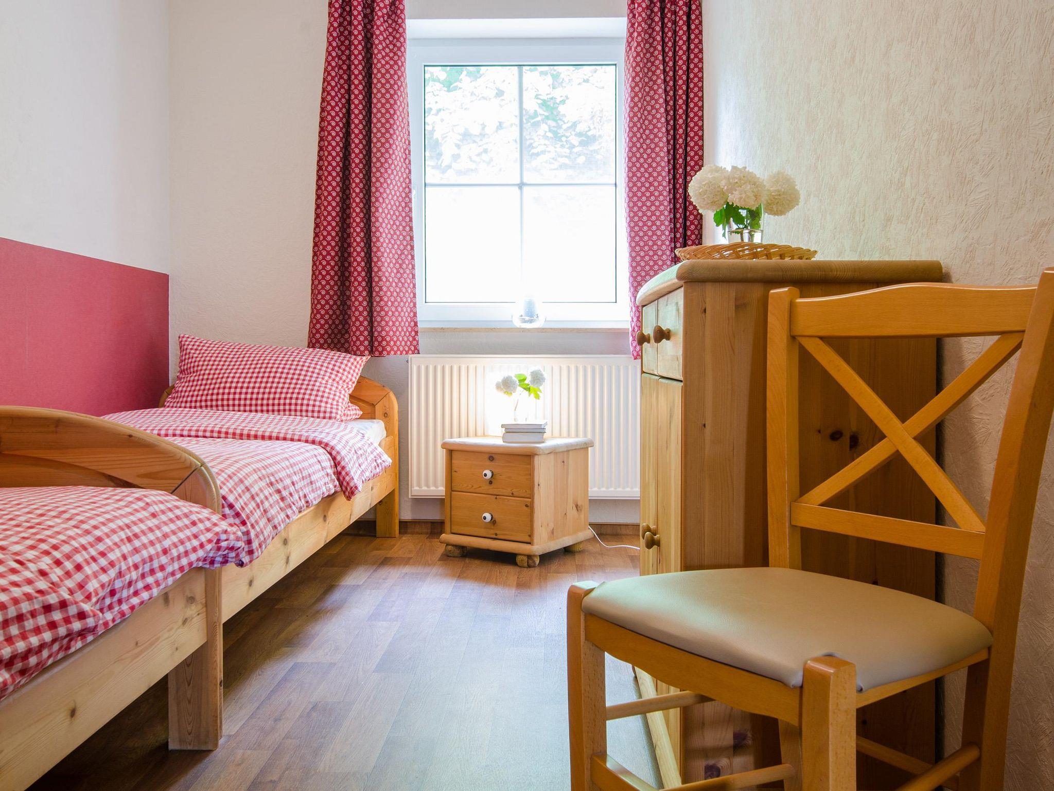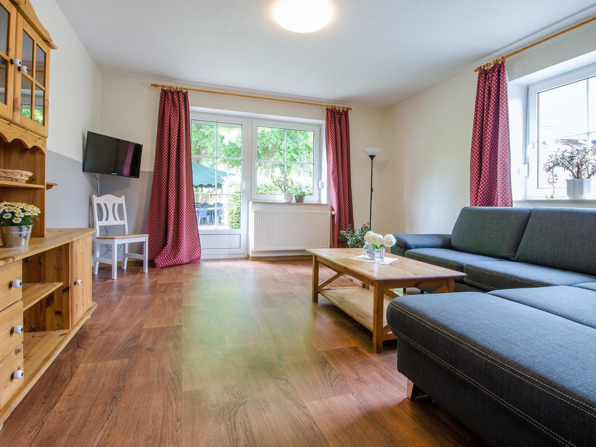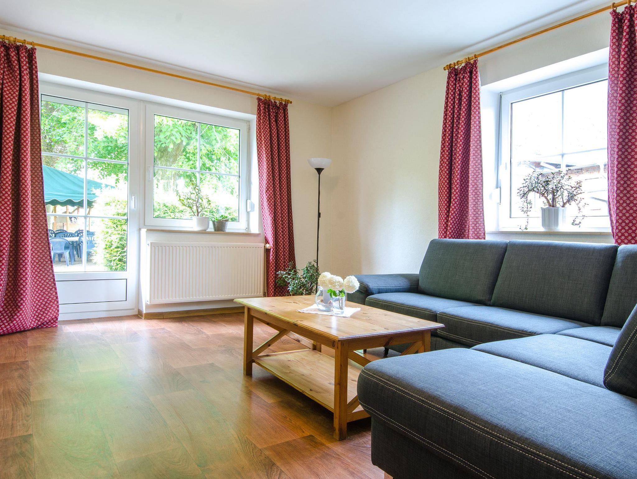 bietet 2 Schlafzimmer, 1 Wohnzimmer, 1 voll ausgestattete Küche, 2 WC, 1 Dusche und Terrasse. Benutzung von Waschmaschine und Trockner im Nebengebäude ist möglich.Das Grundstück mit Spielplatz bietet viel Platz zum Toben und Spielen und Abwechslung für die Kinder.