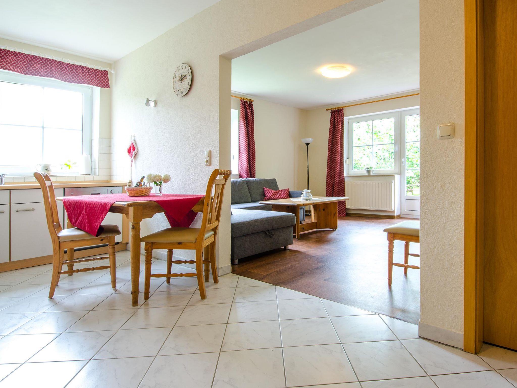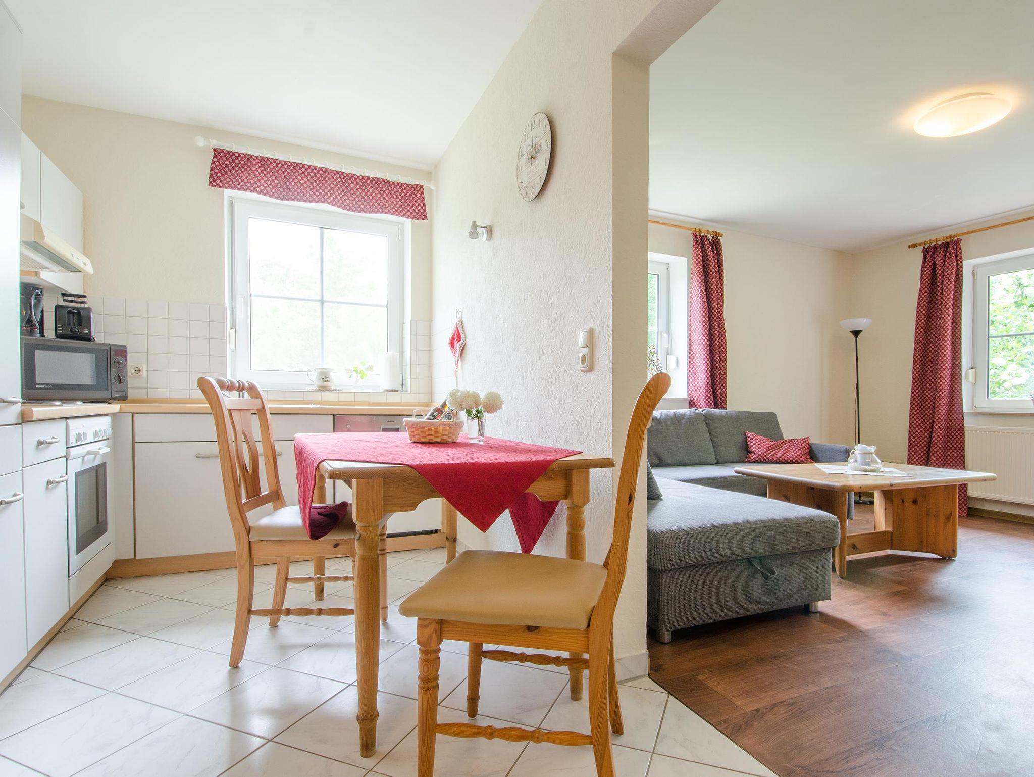 Größe 70qm, 2 Schlafzimmer mit je 2 Betten, Wohnzimmer mit Schlafcouch zum Ausziehen für zwei Personen, TV + Telefon, voll ausgestattete Küche mit Herd, Backofen, Geschirrspüler, Kaffeemaschine, Toaster, Mikrowelle, Bad mit Dusche und WC, Gästetoilette, Handtücher, Bettwäsche und Endreinigung inklusive, Waschmaschine und Wäschetrockner vorhanden, Reitmöglichkeiten vor Ort, Großes Gelände zum Toben und spielen, Grillmöglichkeiten