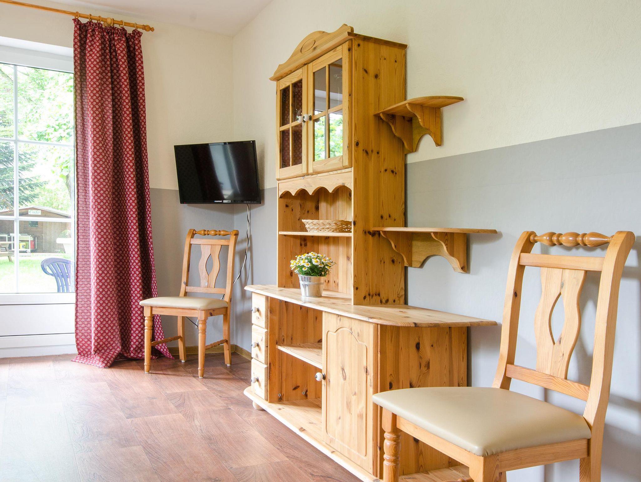 bietet 2 Schlafzimmer, 1 Wohnzimmer, 1 voll ausgestattete Küche, 2 WC, 1 Dusche und Terrasse. Benutzung von Waschmaschine und Trockner im Nebengebäude ist möglich.Das Grundstück mit Spielplatz bietet viel Platz zum Toben und Spielen und Abwechslung für die Kinder.