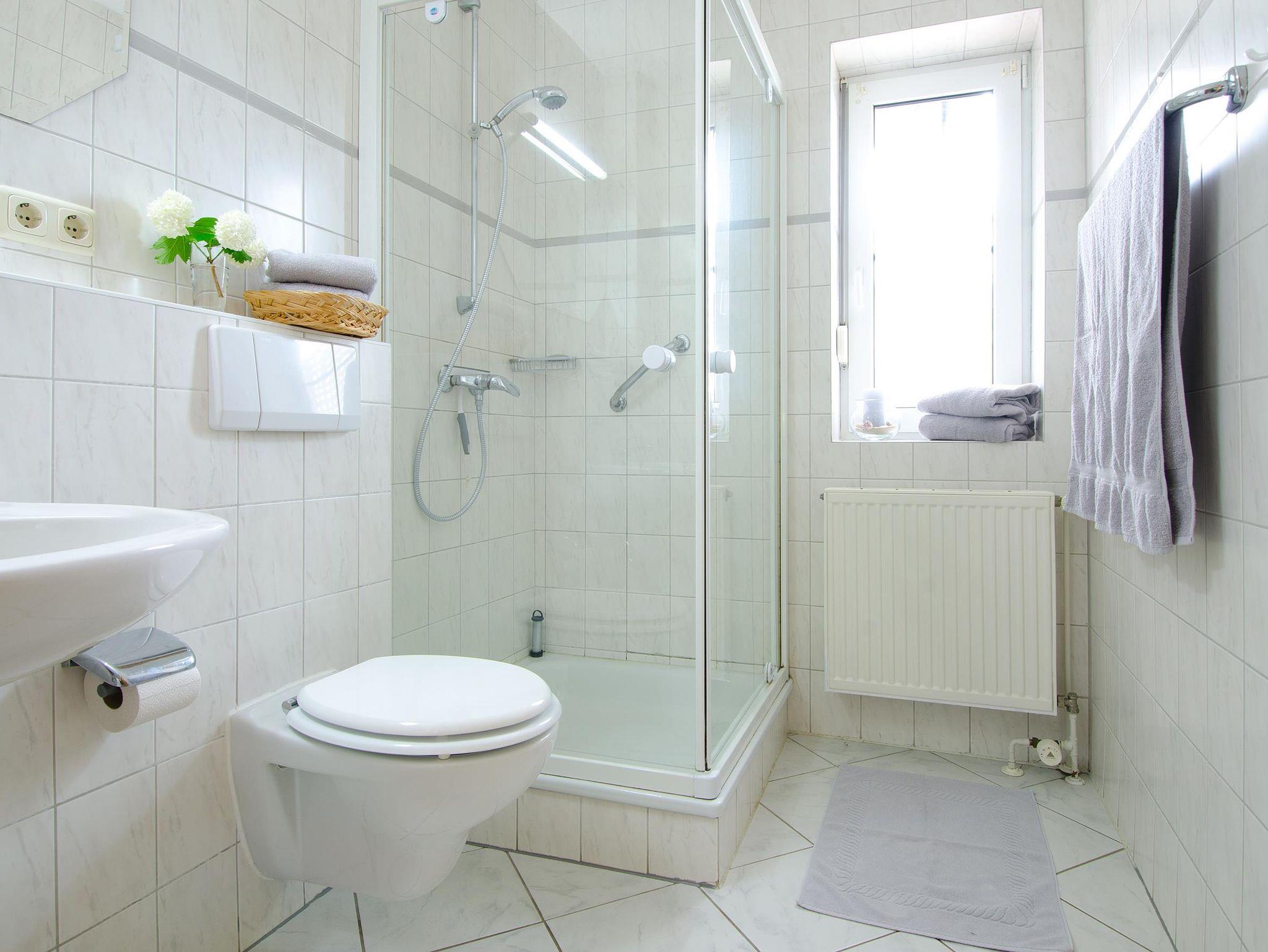 Dusche, WC, Handtücher, Fön,