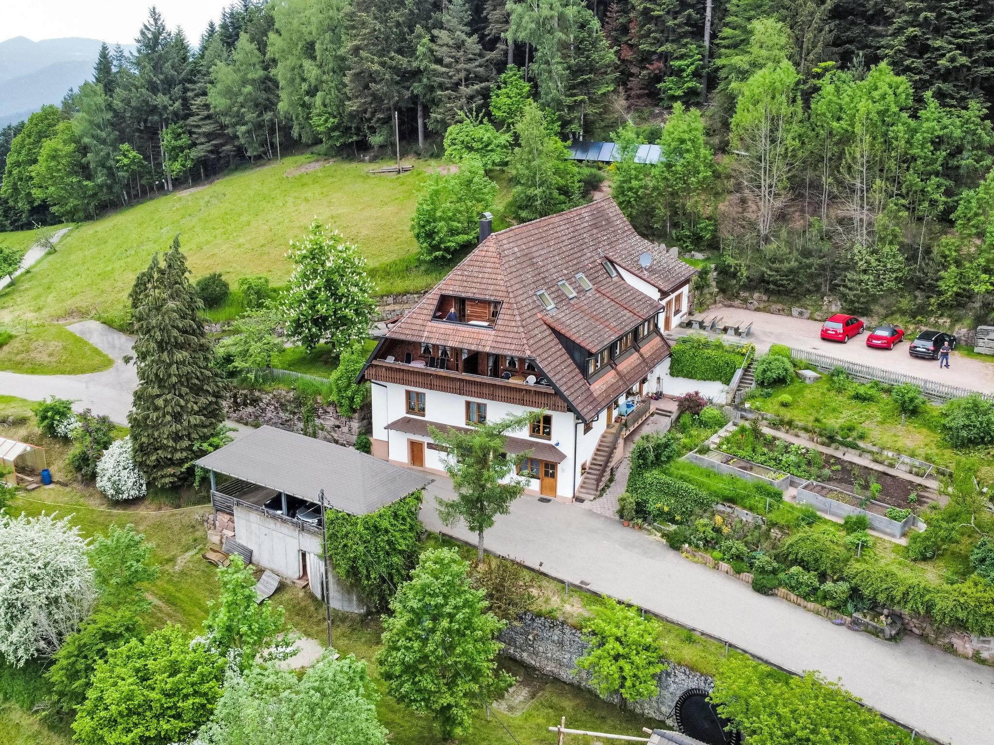 Hinterlehengericht 4 km from Schiltach: Working farm "Biohof Herrenweg". Outside the resort, 3 km from the centre of Schramberg, in a secluded, quiet, sunny position, along the wooded area, in a cul-de-sac, in the countryside. For shared use: garden with lawn for sunbathing. Patio, children's playground. In the house: lounge, central heating system, washing machine (extra), tumble dryer (for shared use, extra). Parking at the house. Grocery 3 km, supermarket 3 km, restaurant 1 km, bus stop 2 km, railway station "Schiltach" 10 km, outdoor swimming pool 12 km, indoor swimming pool 4 km. Golf course (9 hole) 19 km, tennis 12 km, riding stable 6 km, cross country ski track 2 km. Please note: car recommended. Additional accommodations can be booked. The "Biohof" (organic farm) comprises 2 buildings situated in the middle of nature (630 m above sea level), 5 km outside of Hinterlehengericht, with magnificent views to the Black Forest. The farm is run organically, the calves are brought up with their mothers, the meat is marketed by the owner himself. There are also 2 dogs, cats and dwarf rabbits at the property.