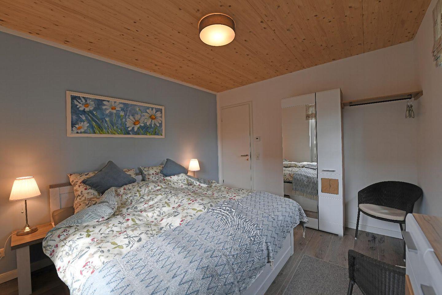 Der moderne, neu gebaute Bungalow ist 130 m² groß und verfügt über eine ruhige Terrasse von ca. 24 m², auf der Sie den Abend in gemütlicher Atmosphäre ausklingen lassen oder den Holzkohlegrill anwenden können, um ein paar leckere Burger zuzubereiten. Das Schlafzimmer ist mit einem Doppelbett von 180x200cm ausgestattet und das Kinderzimmer mit einem Doppelbett von 140x200cm. In der offenen Küche finden Sie eine Kaffeemaschine (Filtermaschine), Wasserkocher und Geschirr was keine Wünsche offen lässt. In der Galerie steht eine Schlafcouch zur Verfügung, auf welcher 2 weitere Personen einen Übernachtungsplatz finden. Im Wohnzimmer befindet sich ein Kamin, in dem Sie ein romantisches Feuer entzünden können. Der Bungalow ist außerdem mit einer herrlichen Infrarotsauna ausgestattet, die Ihnen ein wohlig warmes Gefühl schenkt, wenn Sie sich entspannen möchten - Sie haben endlich die perfekte Ferienunterkunft gefunden!