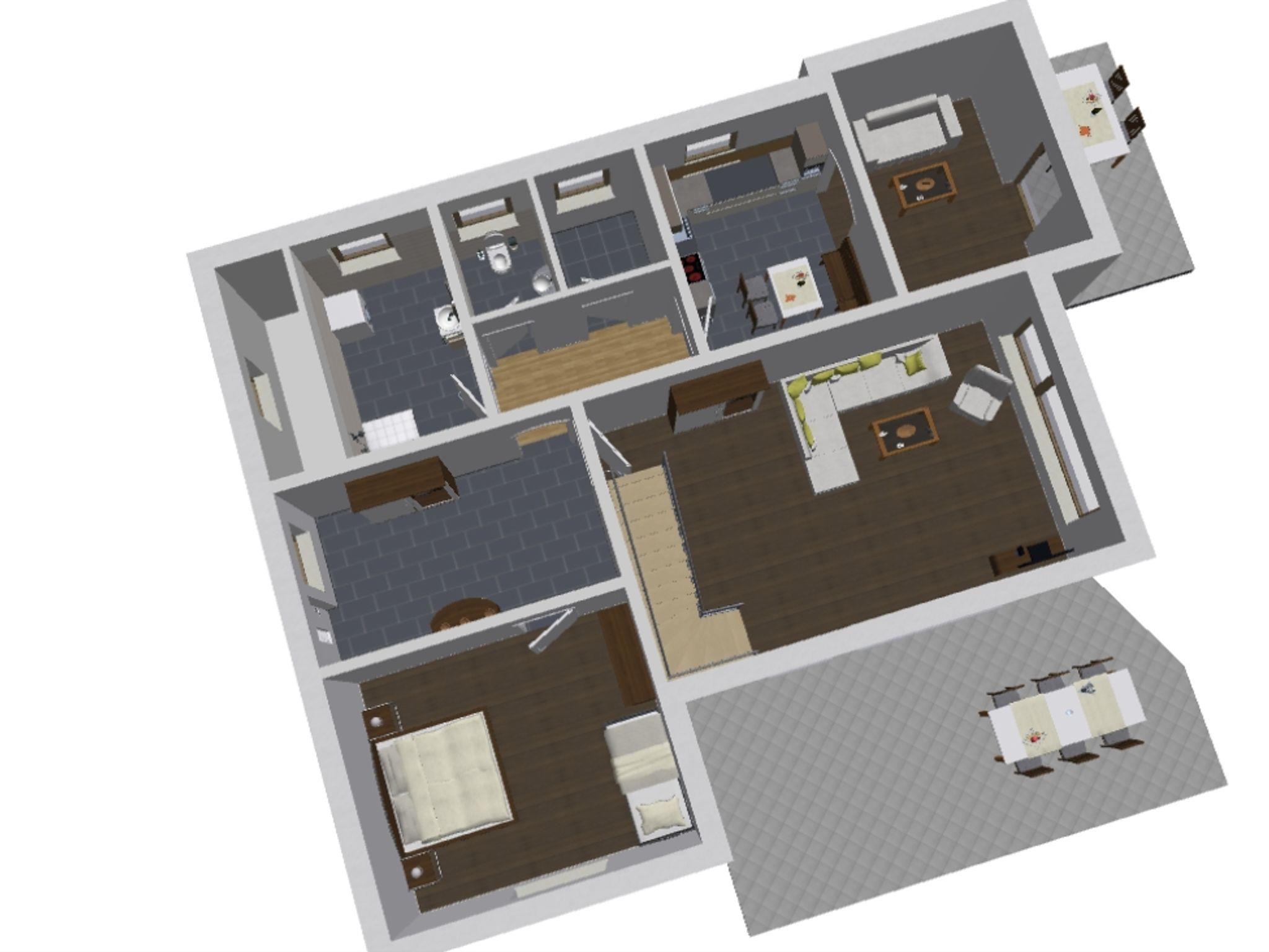 Diese können auch miteinander verbunden werden, sodass bis zu 9 Personen im gesamten Ferienhaus Platz finden.
