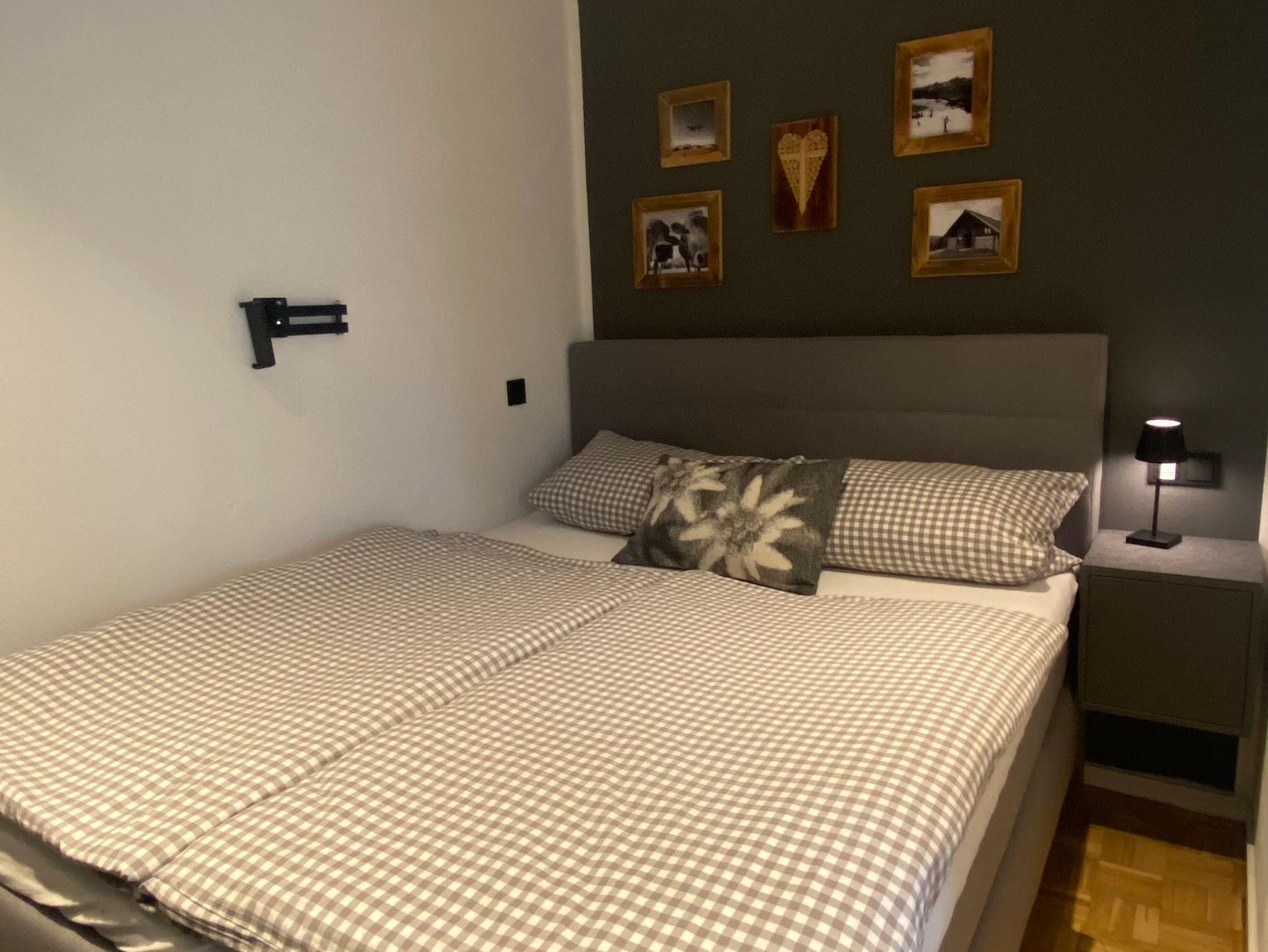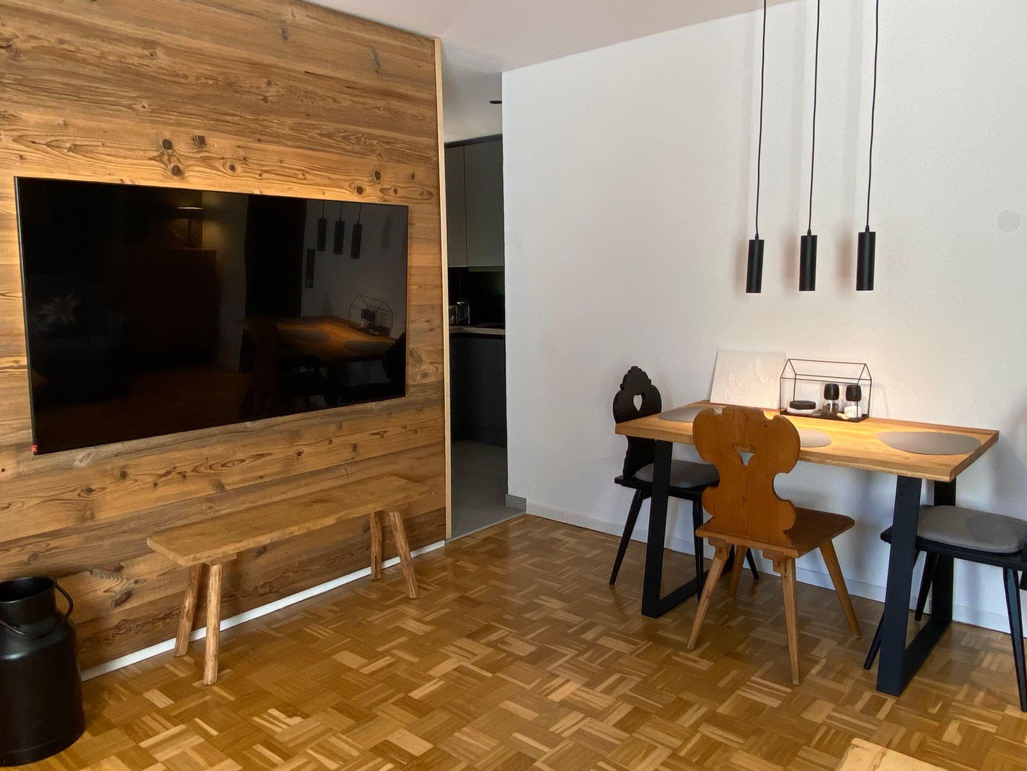 Unser Apartment Bergnest im Stil Alpenchic vereint Gemütlichkeit mit Moderne. Neben dem abgetrennten Schlafbereich mit Boxspringbett (1,60x2m) steht eine hochwertige Schlafcouch mit hohem Sitz- und Liegekomfort (1,40x2m) zur Verfügung. Diese bietet eine praktische Lösung für zwei weitere Übernachtungsgäste. Ergänzt wird das Ambiente durch einen großen Flachbildschirm, der für entspannende Filmabende sorgt. Ein Highlight ist die neue Einbauküche mit Backofen und Spülmaschine. Die Kombination aus rustikalem Charme und modernen Akzenten schafft einen Raum, der zum Verweilen einlädt. Auch die große Sonnenterrasse mit Berg und Wiesenblick lädt zum Entspannen ein.