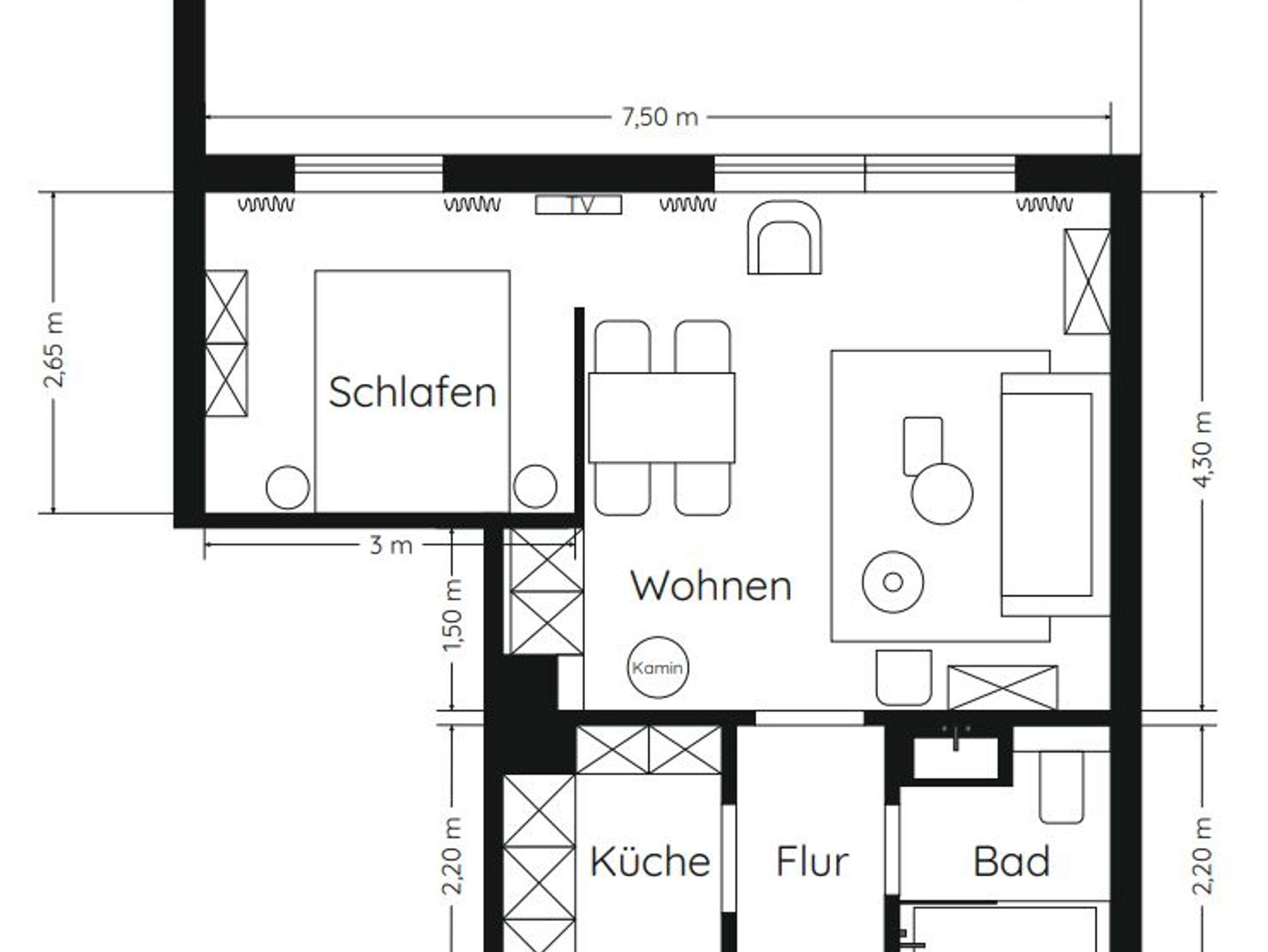 Die Ferienwohnung ist geschmackvoll und hochwertig eingerichtet. Sie besteht aus insgesamt vier Zimmern - Küche, Bad, Wohn- / Esszimmer sowie Schlafzimmer.