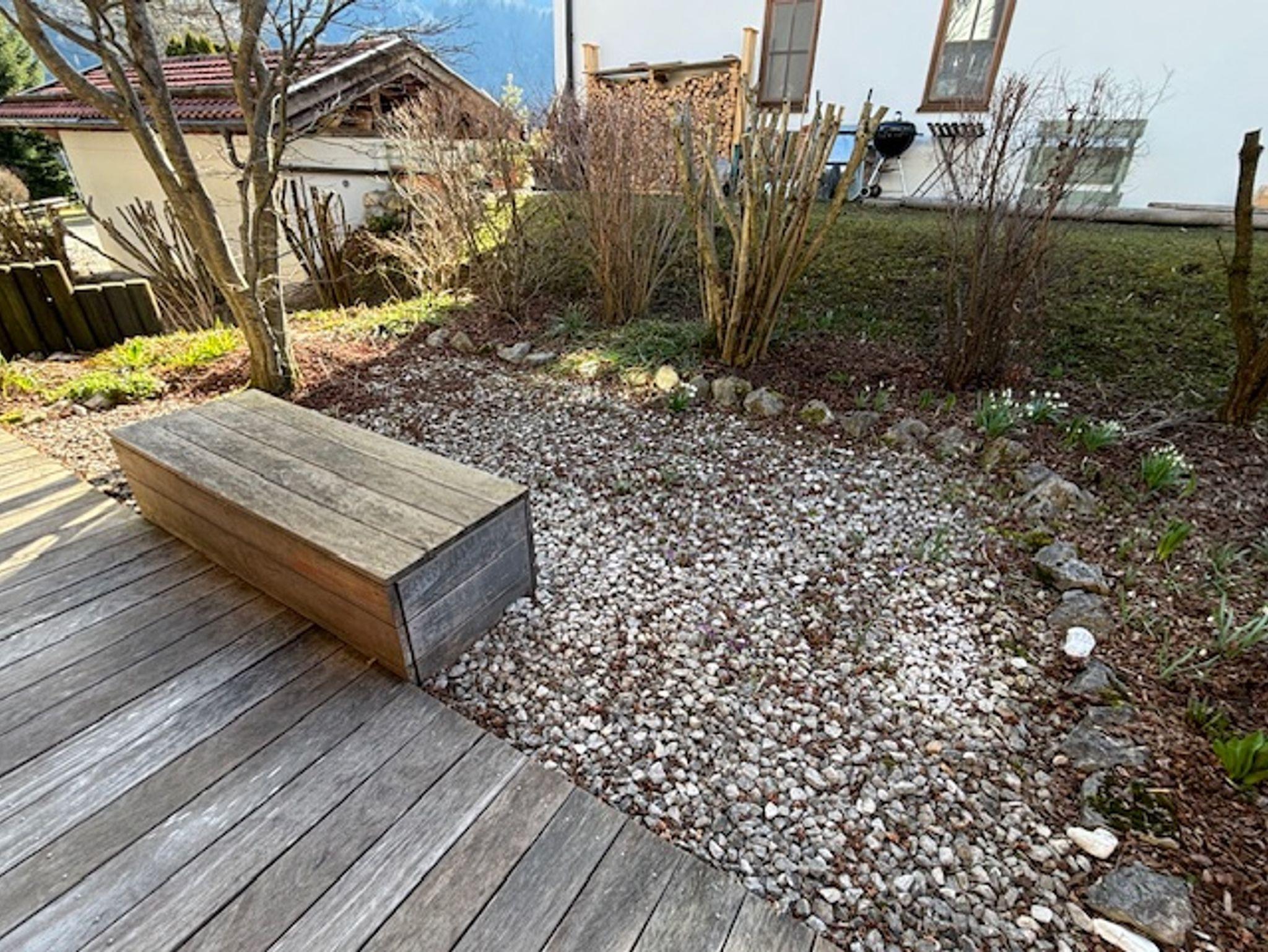 Zu der Ferienwohnung gehört eine Terasse mit eigenem Garten. Achten Sie bitte darauf, dass Ihr Haustier nicht in den Garten der Nachbarn geht.