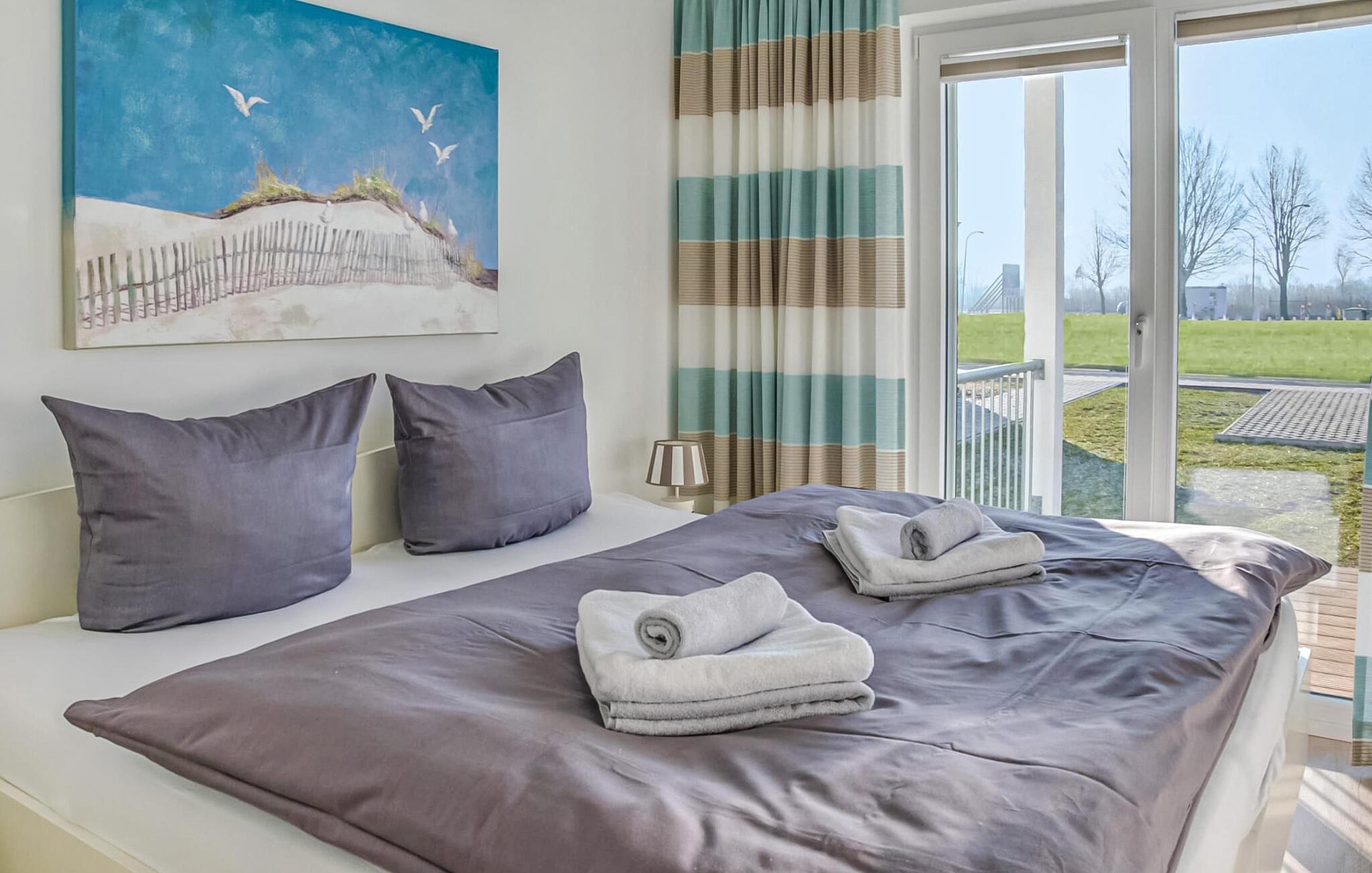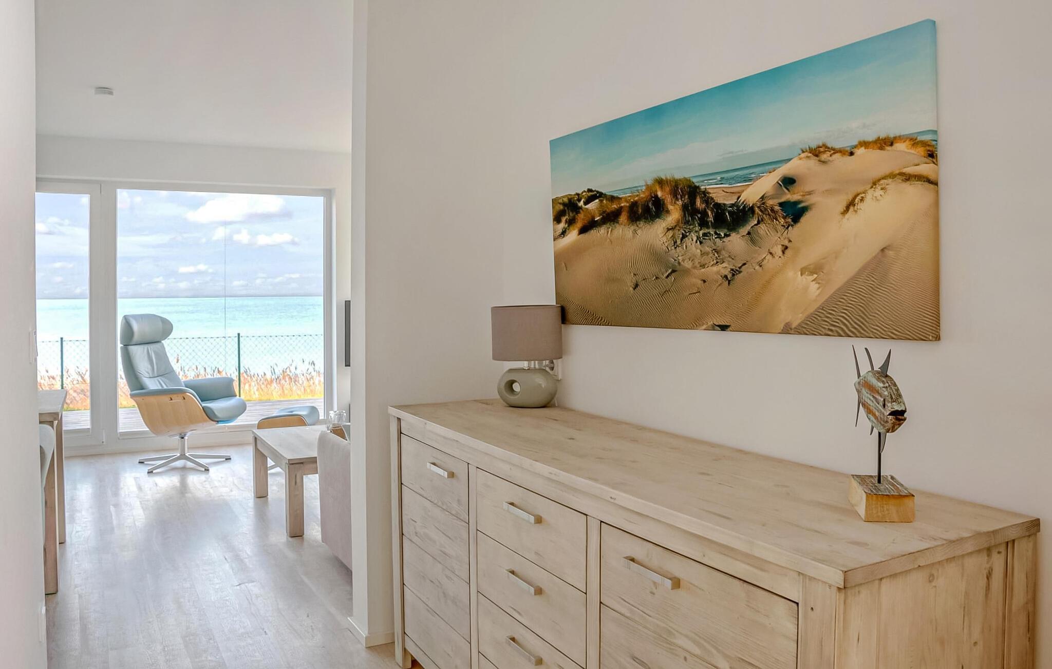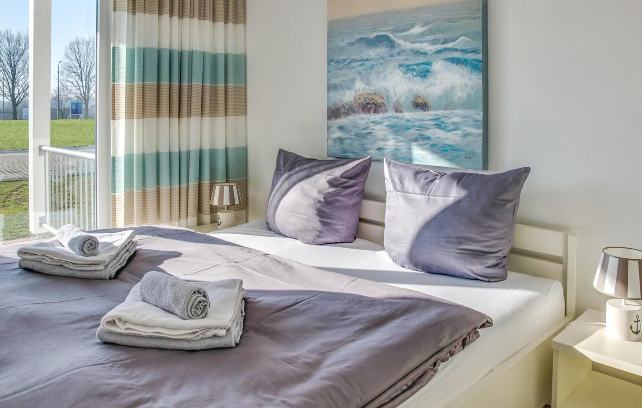 Tidløs ferielejlighed i stueetagen, beliggende direkte ved Sleiren med uforstyrret udsigt over vandet, møbler af høj kvalitet med to terrasser og sauna. Moderne møbler af høj kvalitet og et åbent design lever ferielejligheden Slien Oase op til sit navn. Den uhindrede udsigt til Sliens bredder og passerende sejlskibe fra hele opholds- og spiseområdet lover en feriefølelse. Gulv-til-loft vinduer ud mod den panoramiske vandfront og maritime accenter i interiøret gør ferielejligheden Slien Oase unik. Det åbne køkken af høj kvalitet lader intet tilbage at ønske, mens spisebordet og stuen med udsigt til vandet inviterer til afslapning. Fra stuen kan I få adgang til den fantastiske terrasse direkte på den idylliske bredde af Slei. To soveværelser giver plads til fire voksne og giver udgang til den anden terrasse, der sydvendt lover sol hele dagen lang. Det store soveværelse har en dobbeltseng, mens enkeltsengene i det andet soveværelse nemt kan skubbes sammen med et ekstra tv. Et andet sted at sove er på den komfortable sovesofa i opholdsstuen i ferielejligheden. Det store badeværelse får wellness-hjerter til at banke hurtigere, fordi det udover et spabad også har en sauna (infrarød kabine). En bruser på gulvniveau giver ekstra komfort. Der er en privat parkeringsplads lige foran huset. Og kommer I med cykler, kan I nemt parkere dem i jeres eget depotrum lige foran huset. Vores favoritsted: Den afslappende lænestol i stuen med direkte udsigt over Sleien. Bemærk venligst: OstseeResort Olpenitz er meget populært, og der bygges fortsat i parken. Ikke desto mindre kan I se frem til en 5-stjernet standard og et førsteklasses ophold. Byggeaktiviteterne kommer ikke til at forstyrre jer på ferien, og derfor gives der ikke yderligere afslag i prisen.