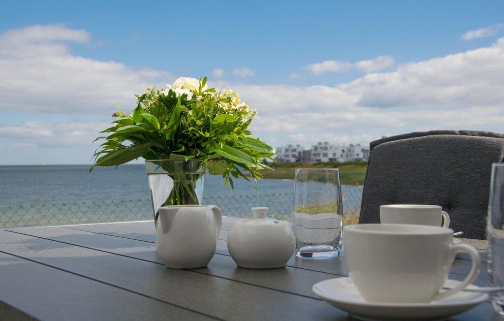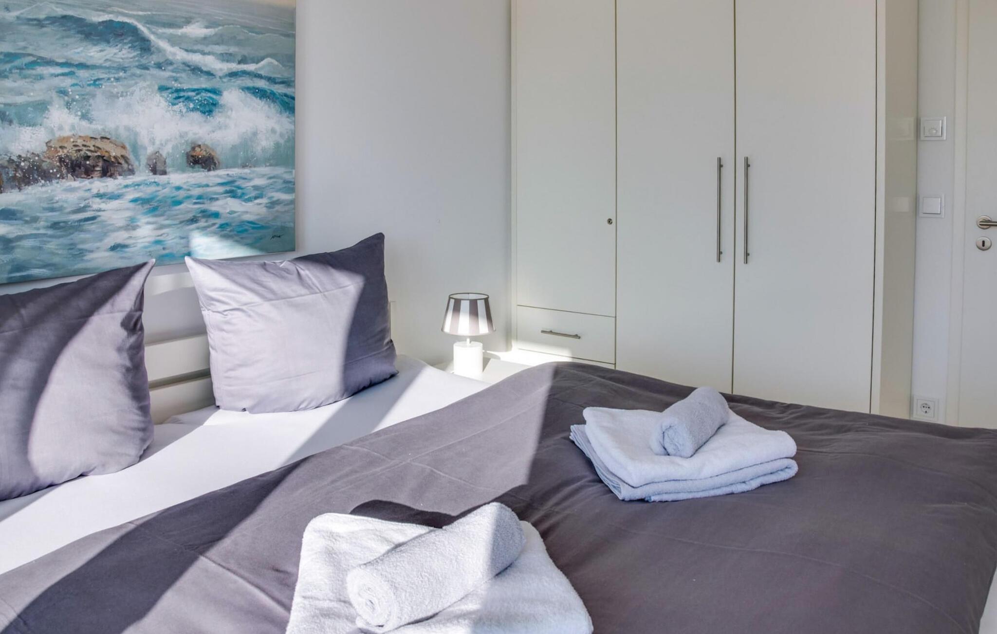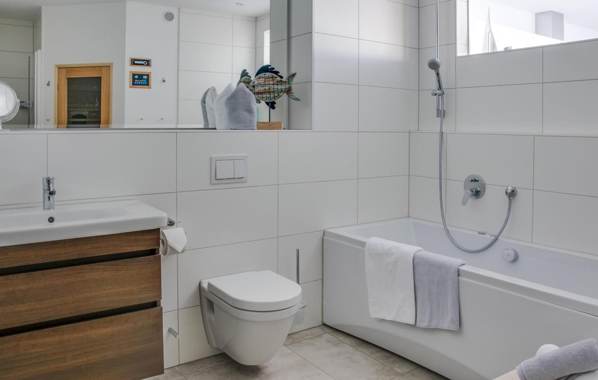 Tidløs ferielejlighed i stueetagen, beliggende direkte ved Sleiren med uforstyrret udsigt over vandet, møbler af høj kvalitet med to terrasser og sauna. Moderne møbler af høj kvalitet og et åbent design lever ferielejligheden Slien Oase op til sit navn. Den uhindrede udsigt til Sliens bredder og passerende sejlskibe fra hele opholds- og spiseområdet lover en feriefølelse. Gulv-til-loft vinduer ud mod den panoramiske vandfront og maritime accenter i interiøret gør ferielejligheden Slien Oase unik. Det åbne køkken af høj kvalitet lader intet tilbage at ønske, mens spisebordet og stuen med udsigt til vandet inviterer til afslapning. Fra stuen kan I få adgang til den fantastiske terrasse direkte på den idylliske bredde af Slei. To soveværelser giver plads til fire voksne og giver udgang til den anden terrasse, der sydvendt lover sol hele dagen lang. Det store soveværelse har en dobbeltseng, mens enkeltsengene i det andet soveværelse nemt kan skubbes sammen med et ekstra tv. Et andet sted at sove er på den komfortable sovesofa i opholdsstuen i ferielejligheden. Det store badeværelse får wellness-hjerter til at banke hurtigere, fordi det udover et spabad også har en sauna (infrarød kabine). En bruser på gulvniveau giver ekstra komfort. Der er en privat parkeringsplads lige foran huset. Og kommer I med cykler, kan I nemt parkere dem i jeres eget depotrum lige foran huset. Vores favoritsted: Den afslappende lænestol i stuen med direkte udsigt over Sleien. Bemærk venligst: OstseeResort Olpenitz er meget populært, og der bygges fortsat i parken. Ikke desto mindre kan I se frem til en 5-stjernet standard og et førsteklasses ophold. Byggeaktiviteterne kommer ikke til at forstyrre jer på ferien, og derfor gives der ikke yderligere afslag i prisen.