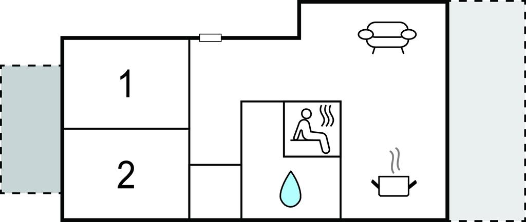 Opholdsstue/køkken - 1 Soveplads. (Sofa, madras eller lignende).