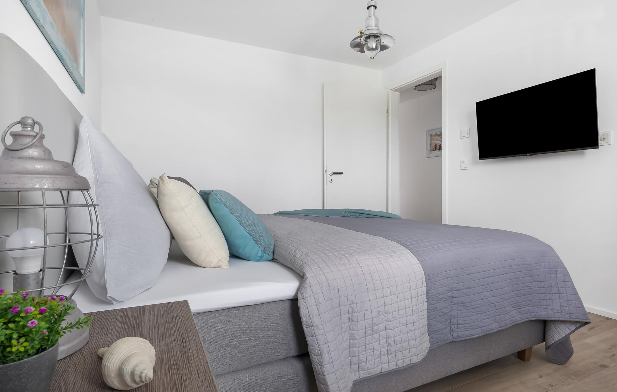 Afslappende ferieluksus i moderne ferielejlighed til 3 personer nær vandet. Højt udstyret og stilfuldt indrettet, ferielejligheden scorer med en eksklusiv beliggenhed direkte på havnepromenaden i OstseeResort Olpenitz. UDSIGTET OVER Slien fra en af de lysfyldte vinduesfronter falder på de flydende huse, østersøfjorden Slien med sejlskibe, der passerer og Schimmelünde fyrtårn. Ligesom de smukke solnedgange, der kan iagttages fra balkonen, er havnebiografen også garanteret. Havnepromenaden ligger neden for ferielejligheden og byder på et voksende udvalg af muligheder og korte afstande til indkøb og de bedste muligheder for spadseretur. Den vellykkede rumlige forbindelse af det moderne tekøkken til den eksklusive opholdsstue fremhæver den hyggelige atmosfære i de rolige omgivelser og tilbyder, ledsaget af lejlighedens eksklusive indretning, den bedste skabelon til en uforglemmelig ferie. Der er en sofa i stuen til en ekstra person, som nemt kan omdannes. Det omfattende udstyret åbne køkken lader intet tilbage at ønske. Her kan I fremtrylle lækre feriemåltider eller en lækker kaffe med friskpisket mælk. Altanen indbyder til en grillaften med udsigt til vandet. Placeret over tingene kan sejlskibe, der passerer ved indsejlingen til Østersøen, observeres fra hele opholds-/spiseområdet og balkonen. Foruden SCHLEIBLICK kan I også beundre Schimmelünde fyrtårn og idyllen i landskabsbeskyttelsesområdet omkring det. Det smukke badeværelse har en moderne bruseniche i gulvniveau, et vaskeskab med underskab og et stort spejl. Ferielejligheden, som ligger på 1. sal, kan nemt nås via elevator fra den helt tætte, separate parkeringsplads. Vores foretrukne sted: at starte dagen med en morgenkaffe på balkonen med den forfriskende havbrise og udsigt over Østersøen... Bemærk venligst: OstseeResort Olpenitz er meget populært, og der bygges fortsat i parken. Ikke desto mindre kan I se frem til en 5-stjernet standard og et førsteklasses ophold. Byggeaktiviteterne kommer ikke til at forstyrre jer på ferien, og derfor gives der ikke yderligere afslag i prisen.