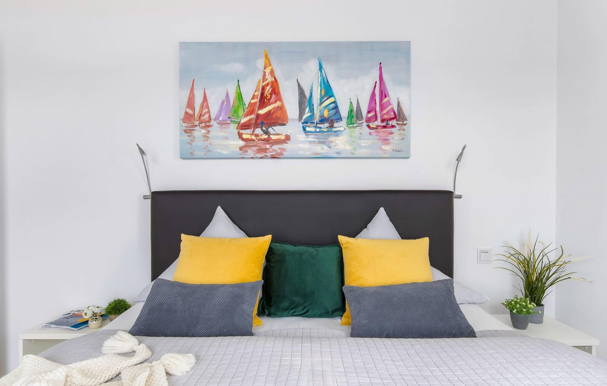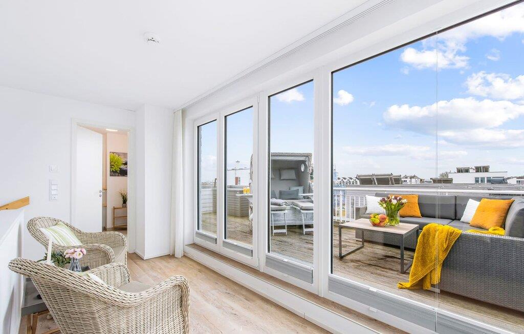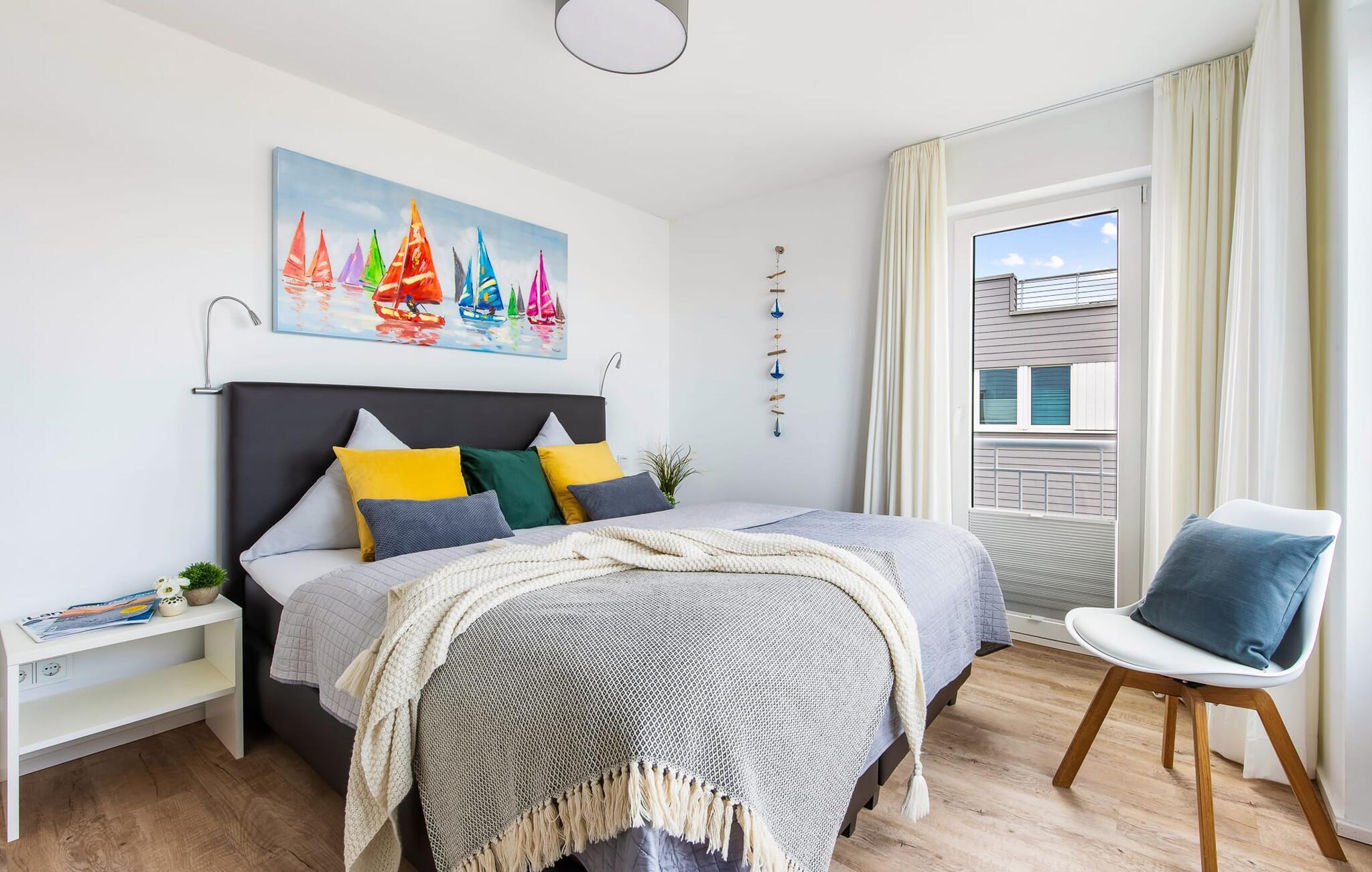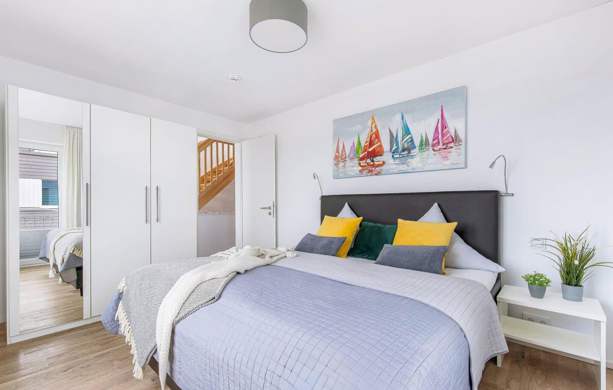 Feriehuset Schleijuwel har en enestående beliggenhed på et smalt næs mellem naturreservatet ved østersøfjorden Slien og sejl- og sportsbådshavnen i ferieområdet Olpenitz. Højdepunktet ved ferieejendommen er studiet på anden sal, for her kan I slappe af i den store finske sauna eller nyde den fantastiske udsigt over Sleien og lystbådehavnen på tagterrassen. Feriehuset Schleijuwel strækker sig over tre etager. Stue/spisestuen i stueetagen af feriehuset er oversvømmet med lys. En stor vinduesfront giver udsigt til den idylliske Sliens bredder fra den tilstødende terrasse. Det, der sker foran døren, er et sandt naturskue: Østersøbrisen svajer blidt sivene på kysten frem og tilbage, mens ænder og svaner muntert starter dagen. Med en kop kaffe på terrassen giver sejlskibe, der passerer forbi, det perfekte panorama. Takket være den sydvestlige orientering er ikke kun masser af solskin, men også fantastiske solnedgange garanteret. Uanset om det er til en hyggelig grillaften eller slapper af med en bog, får den betagende natur lige foran huset feriehjerter til at banke hurtigere. Den stue/spisestue er meget komfortabel. På det komfortable siddeområde eller ved det store spisebord, med en knitrende pejs og gulvvarme overalt, sørger det store fladskærms-tv og Play Station 4 for underholdning på grå dage. Køkkenet er omfattende udstyret og tilbyder fuld feriekomfort. Afslapningsområdet er på første sal. Her giver to soveværelser plads nok til at genoplade jeres batterier. I master bedroom med direkte udsigt over Sleien kan I vågne op og falde i søvn foran en drømmekulisse. Et andet soveværelse giver udsigt over gaden til ferieområdets sejl- og sportsbådshavn. Også på dette niveau er der et komplet badeværelse med bruser og afslappende spabad til det private wellness-program. På anden sal imponerer sommerhuset Schleijuwel med et ekstra opholdsområde og en stor tilstødende tagterrasse. En stor finsk sauna med tilhørende bruser perfektionerer ferieoplevelsen. Heroppefra er den uhindrede udsigt over Sleien og sejl- og sportsbådshavnen i feriestedet Østersøen så smuk, at I ikke kun vil solbade her, men også se stjernerne om natten efter en romantisk solnedgang. En anden soveplads er tilgængelig på dette niveau på den komfortable sovesofa. Et gæstetoilet i stueetagen giver ekstra komfort. Feriehuset Schleijuwel er den ene halvdel af et hus. Der er to parkeringspladser til rådighed direkte foran huset. Cykler kan opbevares i vores eget cykelskur lige foran hoveddøren. Havnepromenaden med supermarked og bistro samt restaurant kan også nås til fods på få minutter. Vores favoritsted: Solnedgangsromantik på tagterrassen. Bemærk venligst, at OstseeResort Olpenitz stadig er under opbygning. På grund af husene under opførelse kan udearealet og bygningstætheden konstant ændre sig og afvige fra de viste billeder. Lejeprisen er allerede beregnet ud fra denne byggesituation. Yderligere rabatter er udelukket.