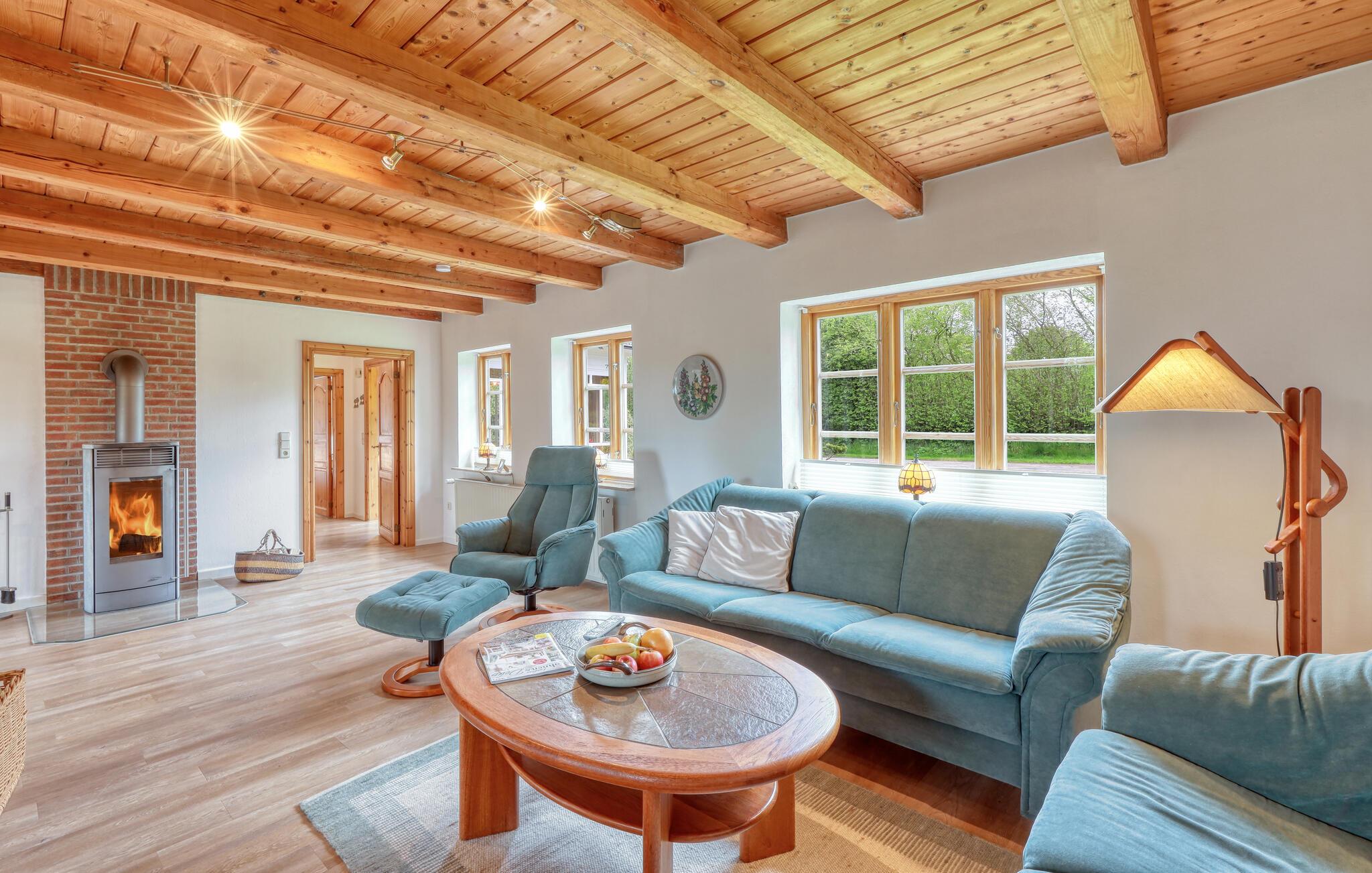 Tag familien under armen og rejs til Slesvig-Holsten, hvor der venter jer en vidunderlig base i dette nydelige hus i Tolk. Huset er dejligt indrettet med store fællesrum, rustikke trælofter og bløde møbler, der gør det nemt at slappe af efter en aktiv feriedag. Hvis vejret viser tænder, kan I tænde op i brændeovnen, der giver varme og et knitrende lydtapet til madlavningen, aftensmaden og sofahyggen med en god film til sent.
