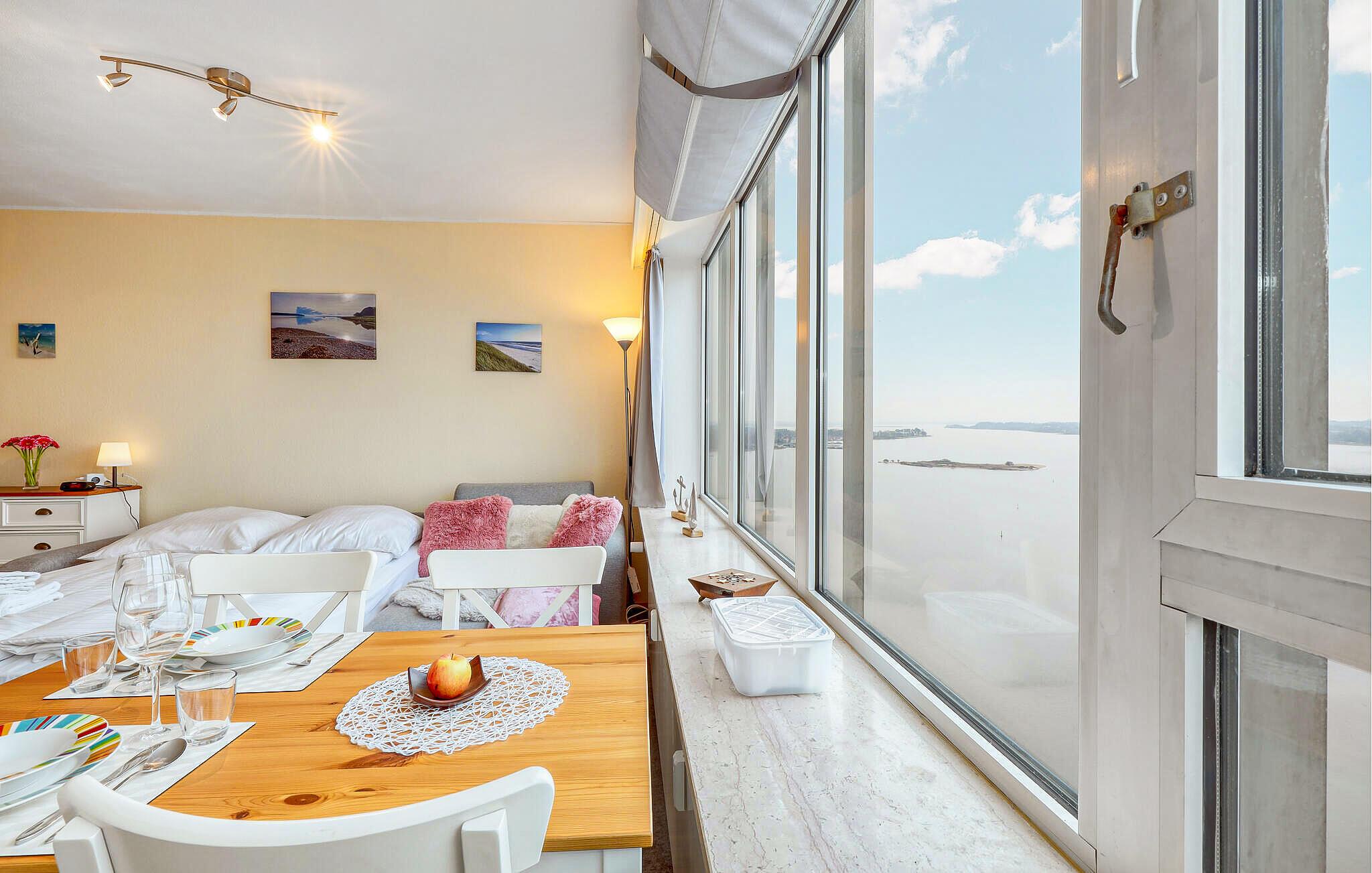 Glæd jer til et fantastisk panorama over fjorden i denne indbydende ferielejlighed.