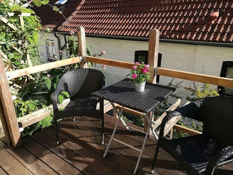 Das liebevoll eingerichtete Häuschen steht verkehrsberuhigt in einer der ältesten, noch mit Kopfsteinen gepflasterten Gassen Schleswigs. Als typisches Altstadthaus hat es in jeder Etage gerade mal ein Zimmer. Wir weisen also darauf hin, dass jemand, der keine Treppen steigen mag, im Erdgeschoss im Esszimmer kampieren müsste. Von dort aus könnte er auf den Balkon am Mühlenbach treten. Dafür läge ihm aber weiterhin die ganze Altstadt zu Füßen, und in wenigen Schritten wäre er im Gewirr der Gassen am Graukloster, auf dem Rathausmarkt, am Dom, auf dem Holm oder am Hafen. Denn hier ist das historische Zentrum der Stadt und dennoch, nur 50 m weiter öffnet sich dem Blick das Holmer Noor als Naturschutzgebiet und Schleswigs grüne Lunge.