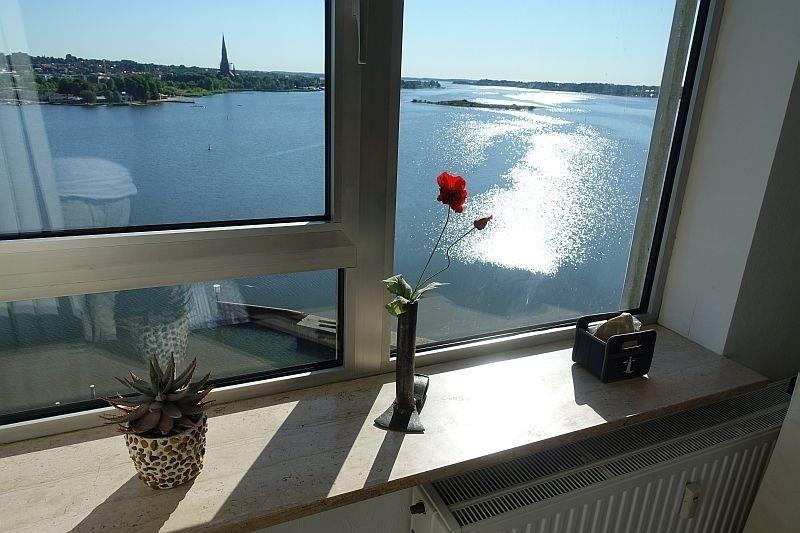 Gut gelegenes Apartment im 10. Stock des Wikingturms mit eindrucksvollem Panoramablick über den Ostseefjord Schlei. Parkmöglichkeit in der in unmittelbarer Nähe gelegenen Parkgarage. Check-in ist im Bedarfsfall auch über eine Schlüsselbox möglich. Der Schlüsselcode wird vor der Anreise mitgeteilt.