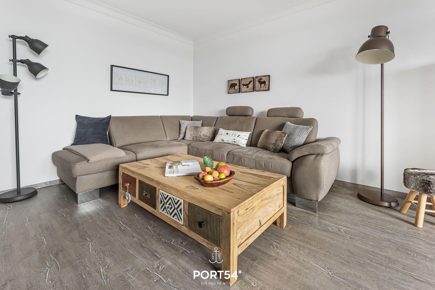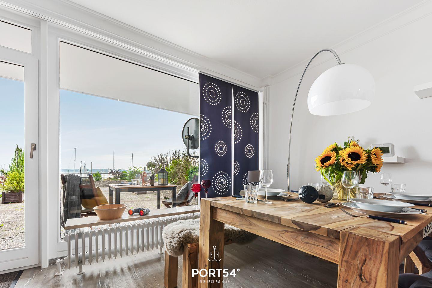 Die Wohnung verfügt über einen großen Wohn- und Essbereich mit Zugang zur Terrasse mit einzigartigem Schleiblick, Esstisch und Sofa, einem großen Flachbild-Sat-TV sowie kostenfreiem WLAN.