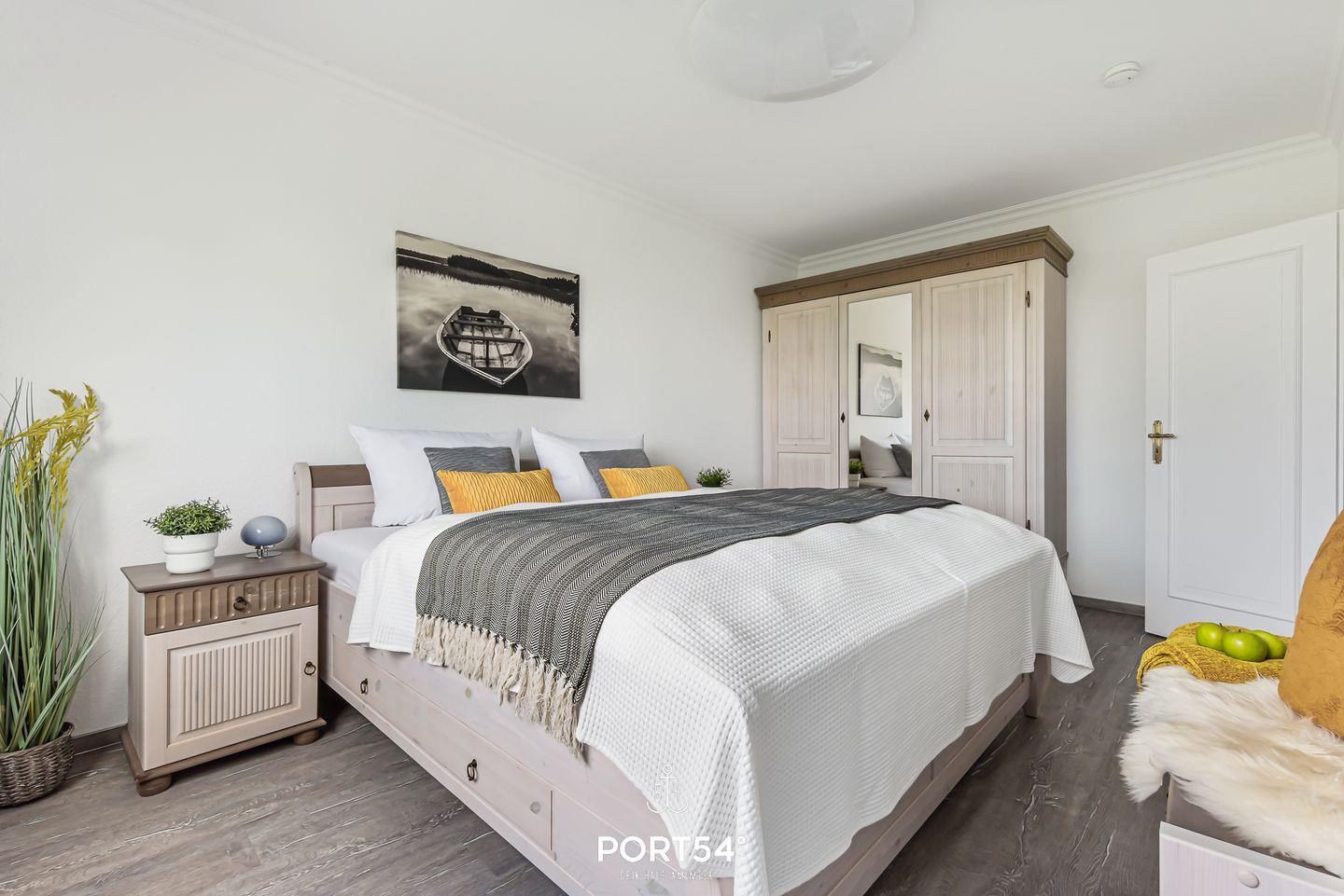 Im Schlafzimmer befindet sich ein großes Doppelbett sowie ein Kleiderschrank. Für Deine kleinen Gäste stehen Dir ein Reisebett und ein Kinderhochstuhl zur Verfügung.