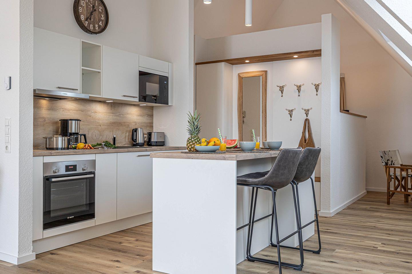 Ein besonderes Highlight der Unterkunft ist der Balkon, von dem Du einen beeindruckenden Blick über die Umgebung genießen kannst – der perfekte Ort, um den Tag mit einem Kaffee zu beginnen oder abends den Sonnenuntergang zu beobachten. Die Küche ist voll ausgestattet mit modernen Geräten, darunter ein Cerankochfeld, Backofen, Mikrowelle, Kühlschrank, Spülmaschine und Kaffeemaschine, sodass Du Deine Lieblingsgerichte zubereiten kannst.