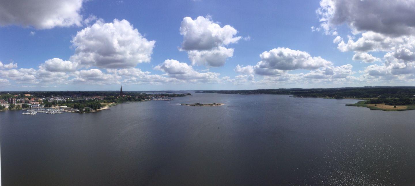 Willkommen also in unserem stylishen Apartment „Schleiverliebt 21.5“ im imposanten Wikingturm! Im 21. Stock dieses auffälligen Wahrzeichens inmitten der Schlei bietet Dir diese Wohnung auf großzügigen 63 m² Platz für bis zu 4 Personen und eröffnet Dir eine atemberaubende Aussicht auf das Wikingerland rund um Haithabu, auf die Stadt Schleswig mit dem imposanten Dom und die pittoreske Schlei.