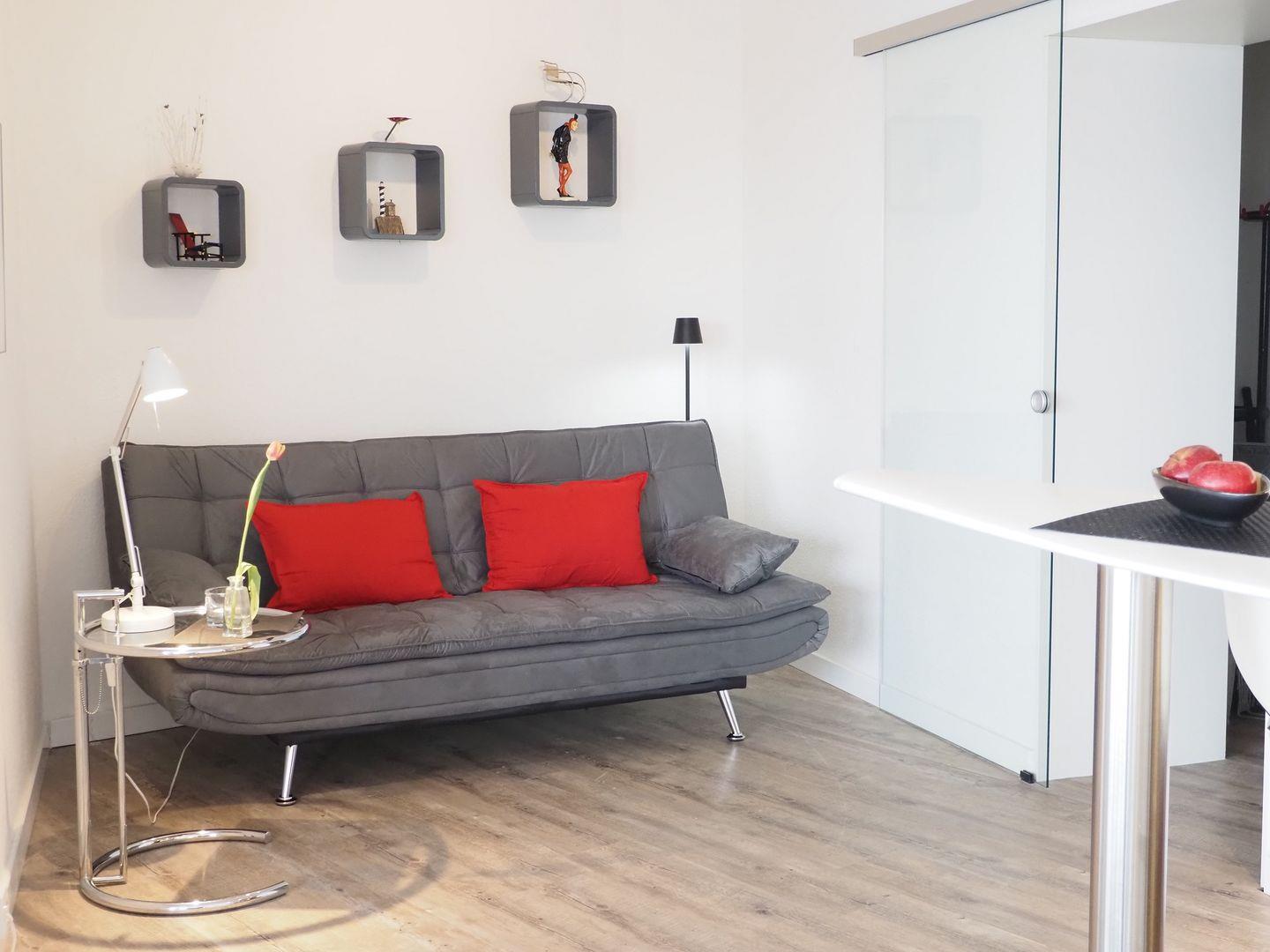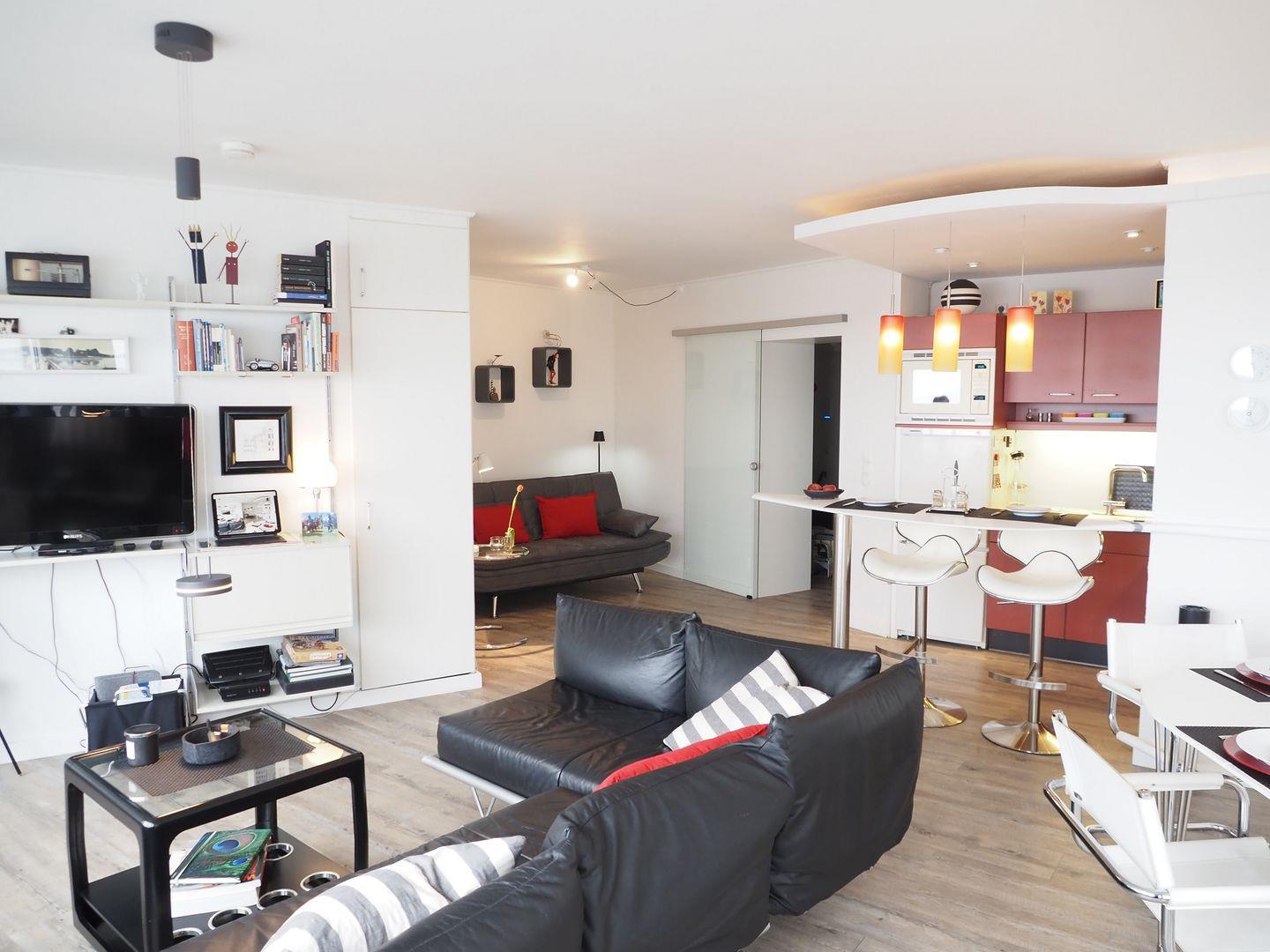 Für Unterhaltung sorgt ein moderner 37-Zoll-Fernseher und für Ruhe ein separater Schlafbereich mit einem komfortablen Doppelbett (160x200cm). Das Sofa im Wohnzimmer lässt sich im Handumdrehen in ein bequemes Doppelbett (120x200cm) verwandeln. Für die kleinsten Entdecker stellen wir Dir auf Anfrage gerne ein Kinderreisebett bereit. Das moderne Badezimmer mit Dusche sorgt für einen frischen Start in den Tag.