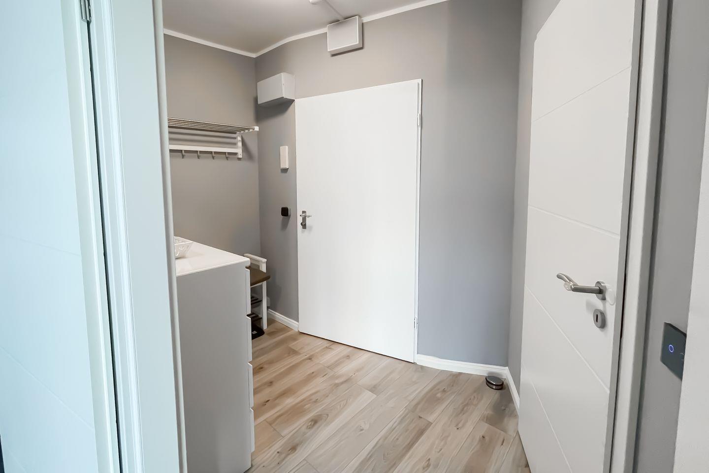 Mit einer Größe von 62qm ist dieses Nichtraucher-Objekt ideal für bis zu 4 Personen und 1 Hund geeignet. Die Wohnung verfügt über 2 Zimmer: ein gemütliches Schlafzimmer mit einem komfortablen Boxspringbett (180x200cm), Kleiderschrank und Verdunklungsmöglichkeiten sowie einen kombinierten Wohn- und Essbereich mit offener Küche.