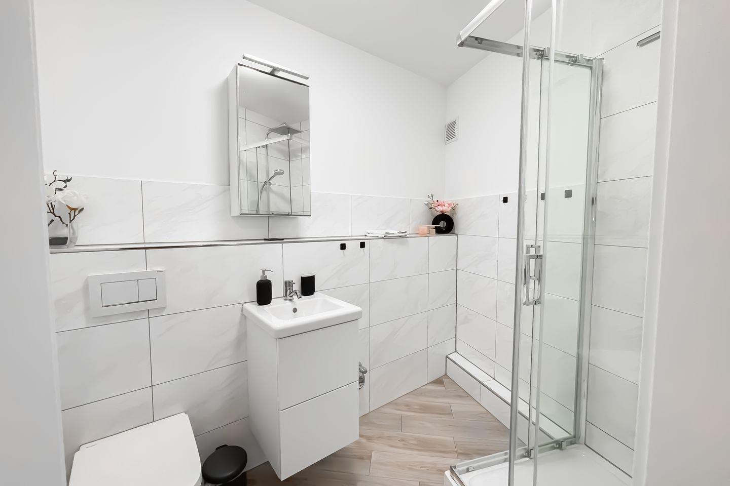 Das Badezimmer ist mit einer Dusche, WC, Spiegel und Waschbecken ausgestattet. Zur Unterhaltung stehen Ihnen ein TV-Gerät sowie WLAN/Internet zur Verfügung. Weitere Annehmlichkeiten der Wohnung sind Gardinen als Sichtschutz an den Fenstern und eine Waschmaschine für Ihren Komfort.