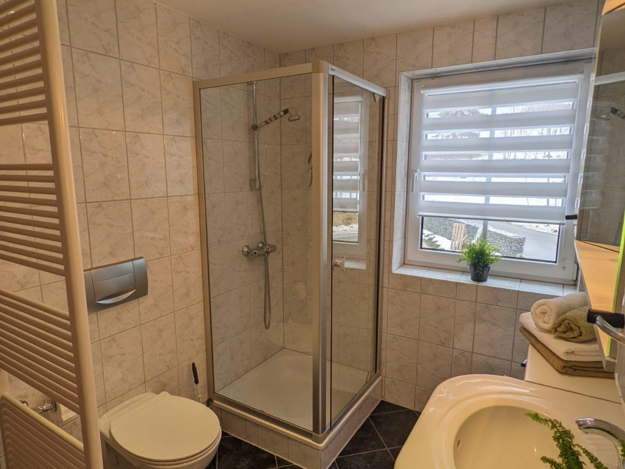 Bad: Dusche, WC, Badmöbel, Föhn, Handtücher