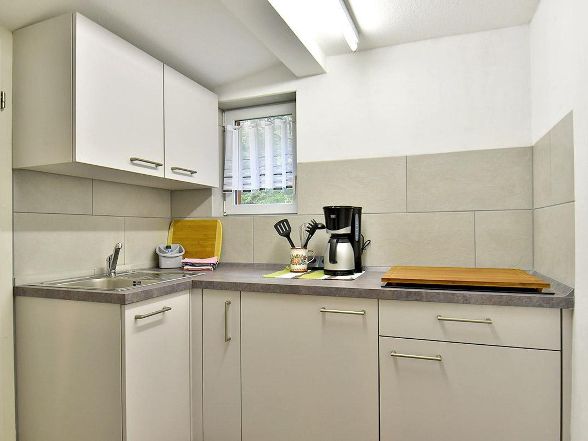 Wohnraum mit Couch, Kabel-TV. 1 Schlafraum mit Doppelbett / Ehebett, 1 Schlafraum mit 2 Einzelbetten, kleines Bad mit Dusche, WC und Waschtisch. Küche mit 4 Platten Kochfeld, kein Backofen. Grundausstattung, Kühlschrank, Kaffeemaschine (1x4 Filtermaschine), Toaster, Wasserkocher, Geschirr, Besteck, Gläser, Töpfe, Pfanne. Überdachte Terrasse.