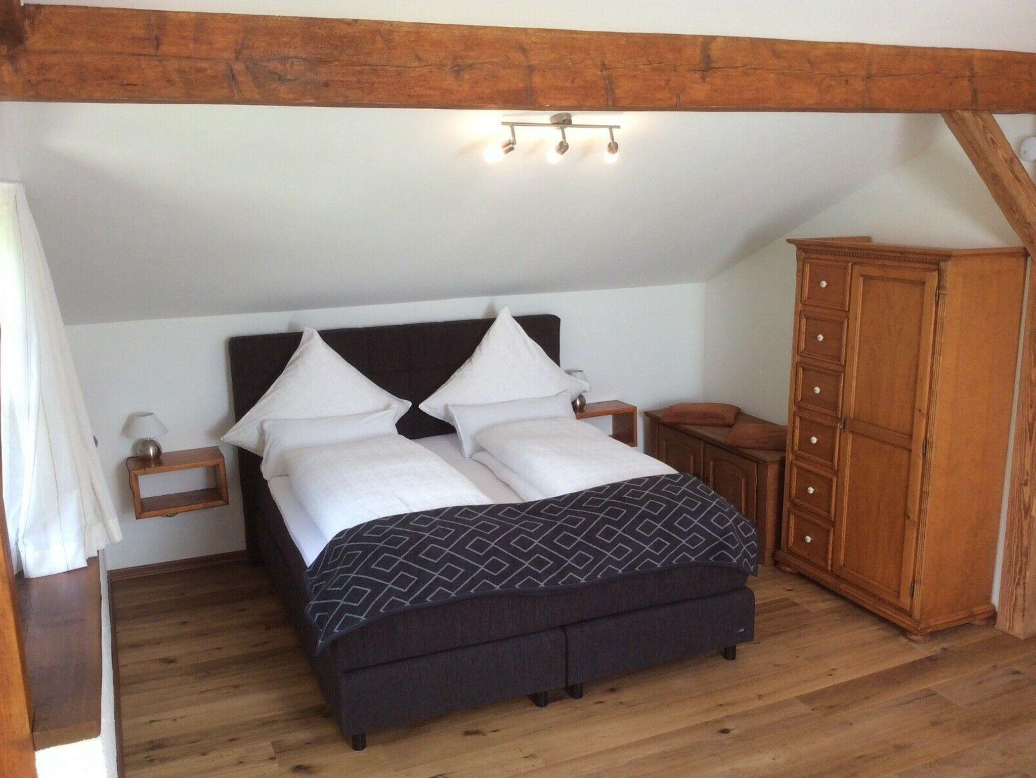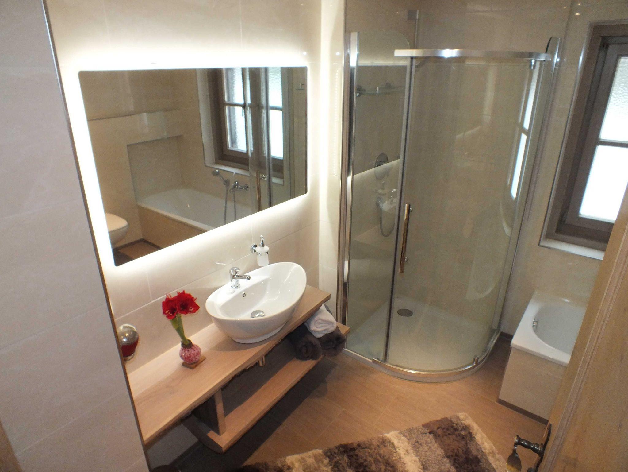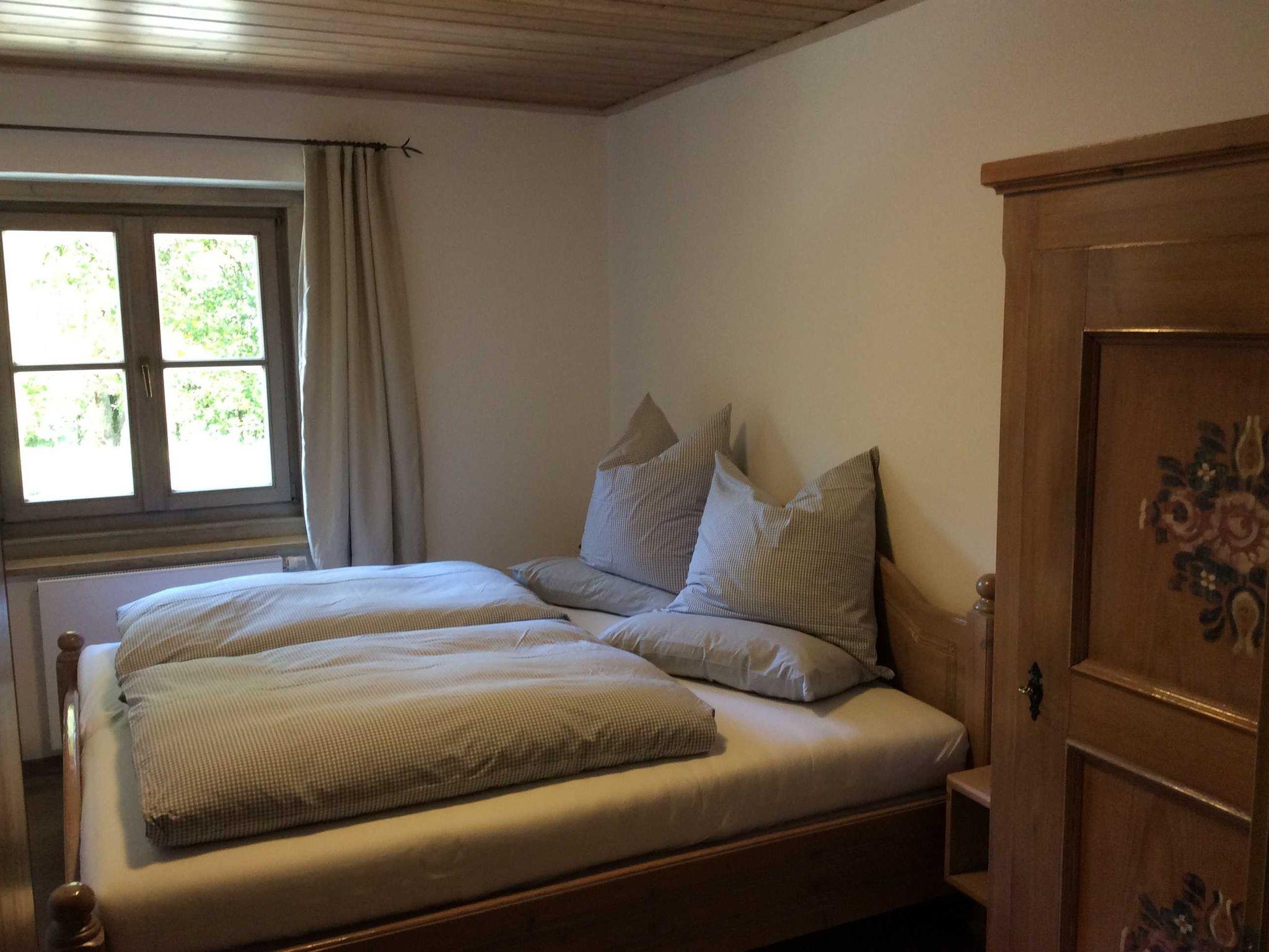 Die voll ausgestattete Nichtraucherwohnung befindet sich im Ergeschoss und hat eine große Terrasse. Die neue Einrichtung ist mit viel Naturholz im bayerischen Stil gestaltet. Das große Badezimmer ist mit Dusche und Badewanne (inklusiv Fön und Gästehandtüchern) ausgestattet.