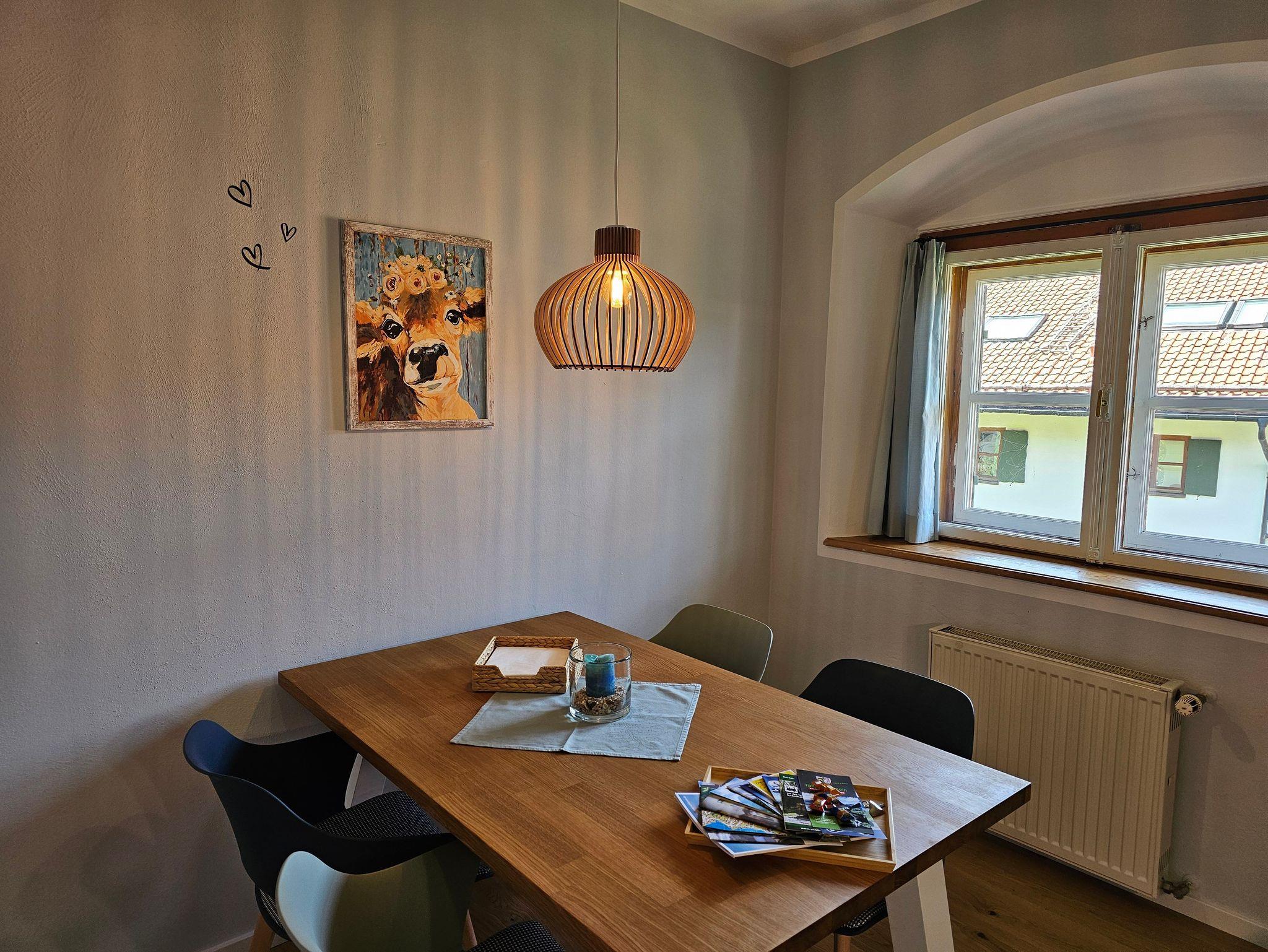 Unsere Ferienwohnung „Bergglück“ mit ihren hohen und hellen historischen Räumen, ist farblich abgestimmt und modern eingerichtet. Hier könnt Ihr die Seele baumeln lassen und die Sehnsucht nach Bergen und See unserer Vorfahren spüren, die vor über 100 Jahren dieses Haus als Ferienresidenz erbaut haben.