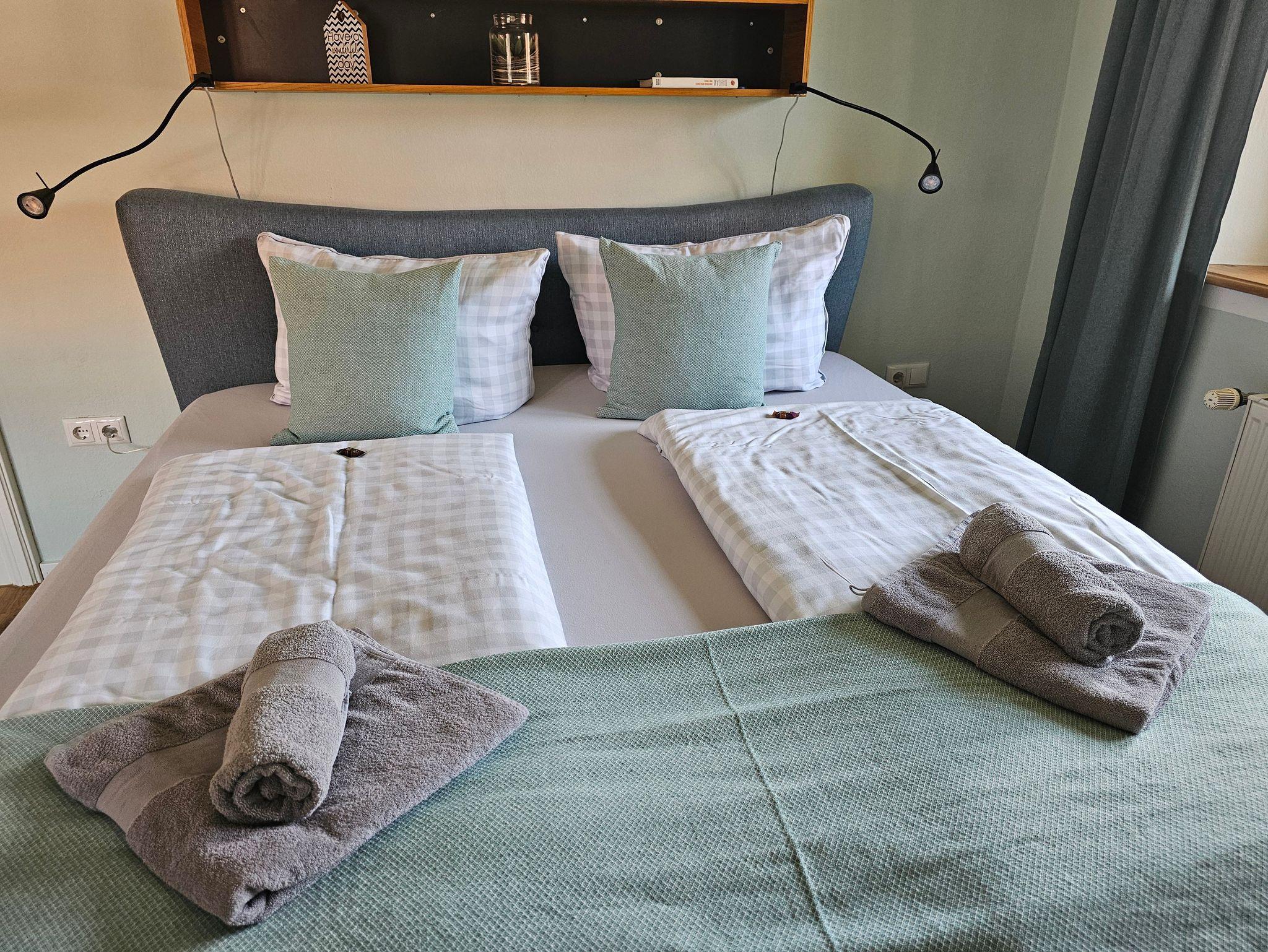 Das großzügige Schlafzimmer ist mit einem Boxspringbett ausgestattet. Daneben liegt das kleine, separate Kinderzimmer/Einzelzimmer (mit Schlafsofa). Es verschafft dem Nachwuchs oder Einzelschläfern einen gemütlichen Rückzugsraum.