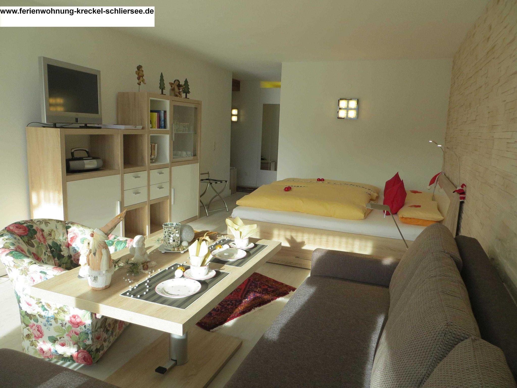 Die ruhige, schöne 1-Raum Ferienwohnung in Schliersee bietet allen nötigen Komfort auf 43 qm und verfügt über eine teilweise überdachte sonnige Terrasse (Südseite) mit tollem Blick auf die Schlierseer Bergwelt. Gartenstühle und Gartentisch laden auf der Terrasse zum Entspannen und Verweilen ein.